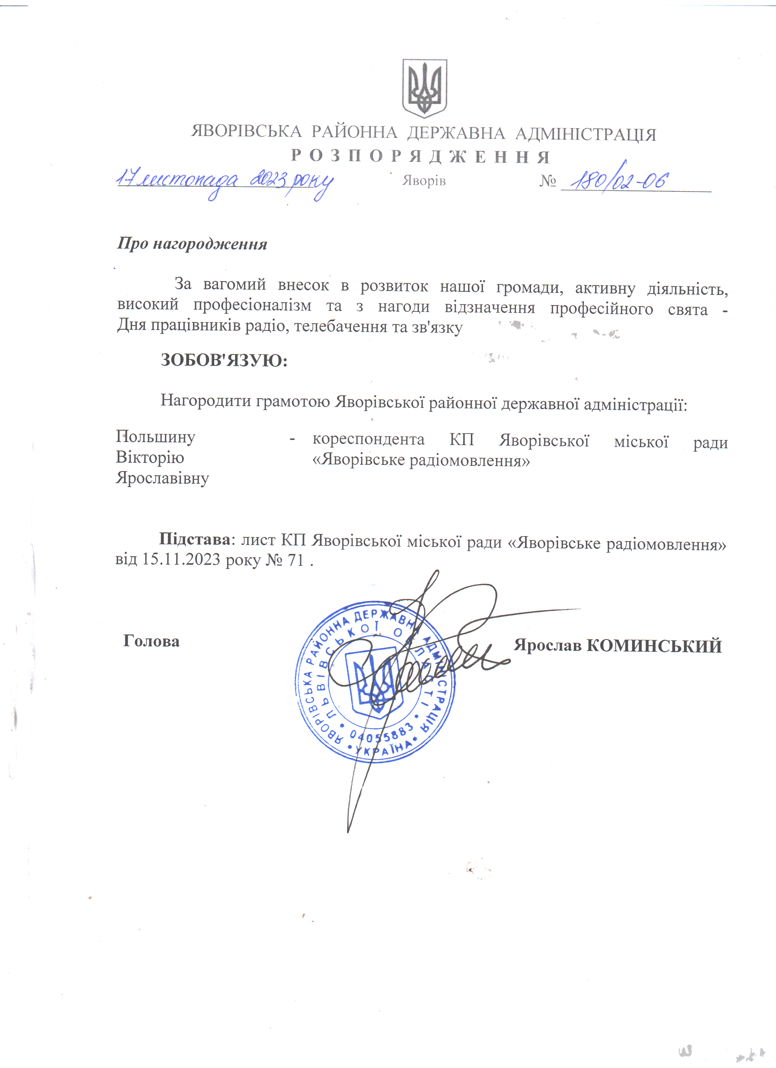 180/02-06 2023-11-17 Про нагородження