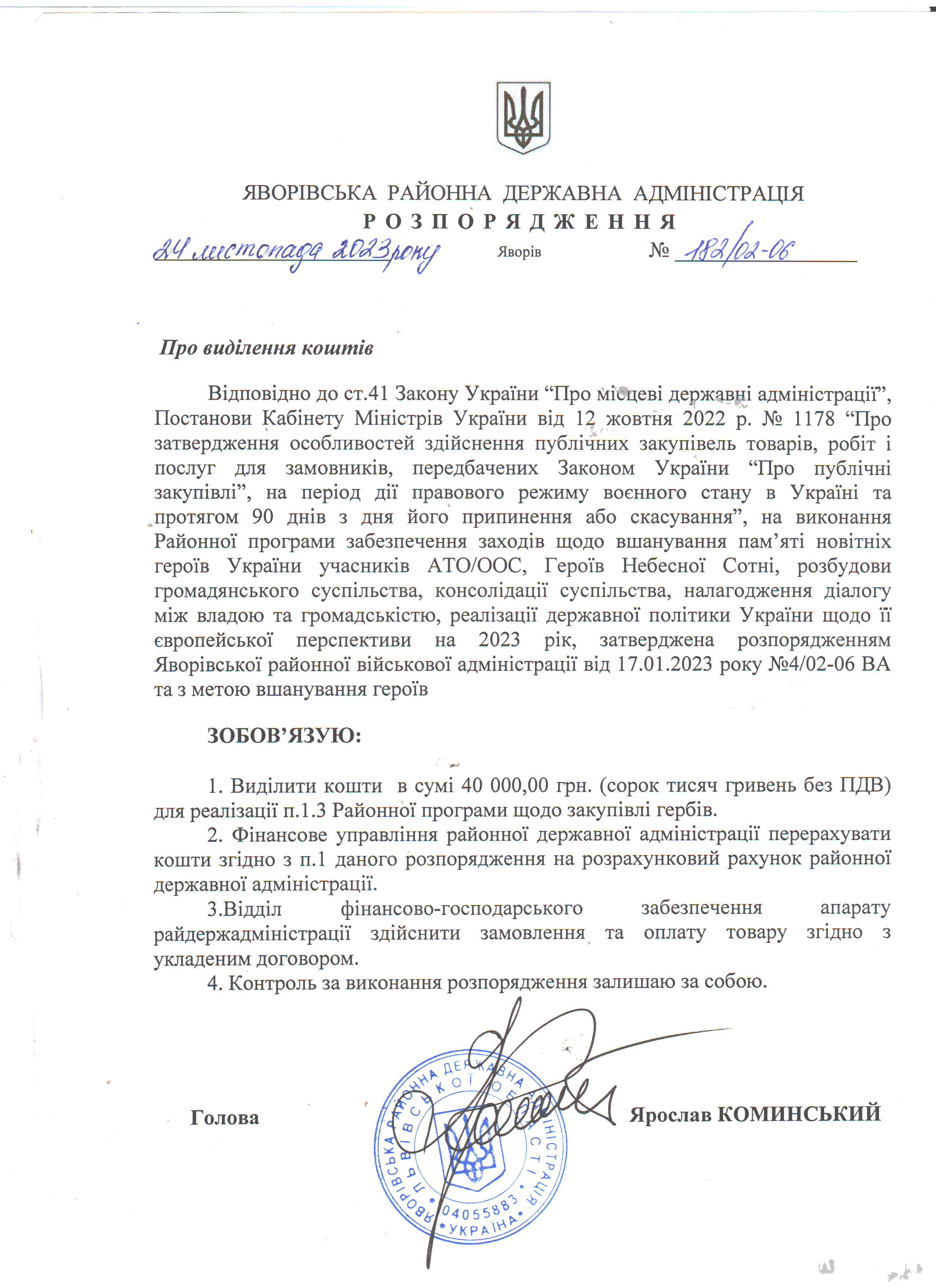 182/02-06 2023-11-24 Про виділення коштів