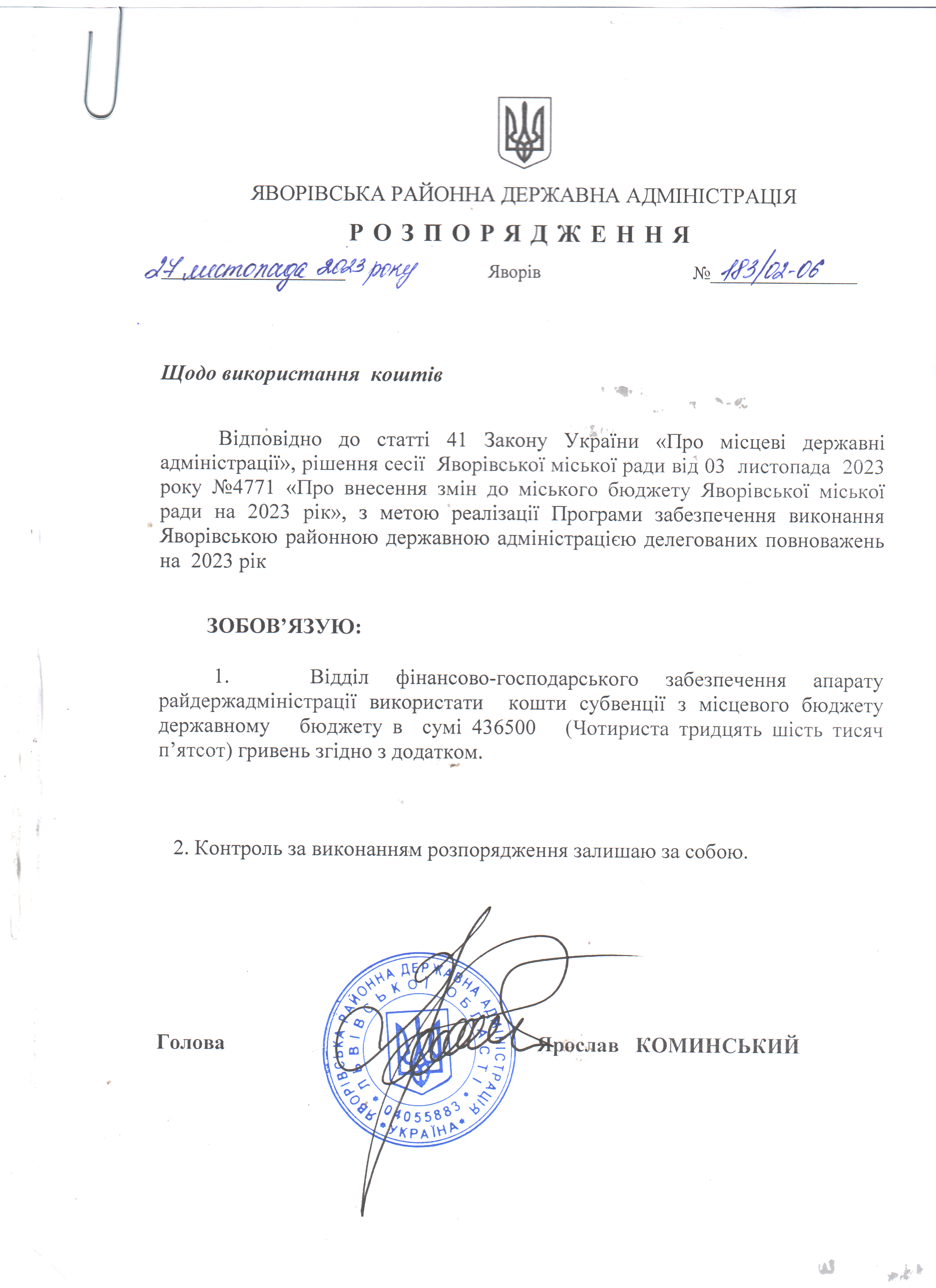 183/02-06 2023-11-27 Щодо використання коштів