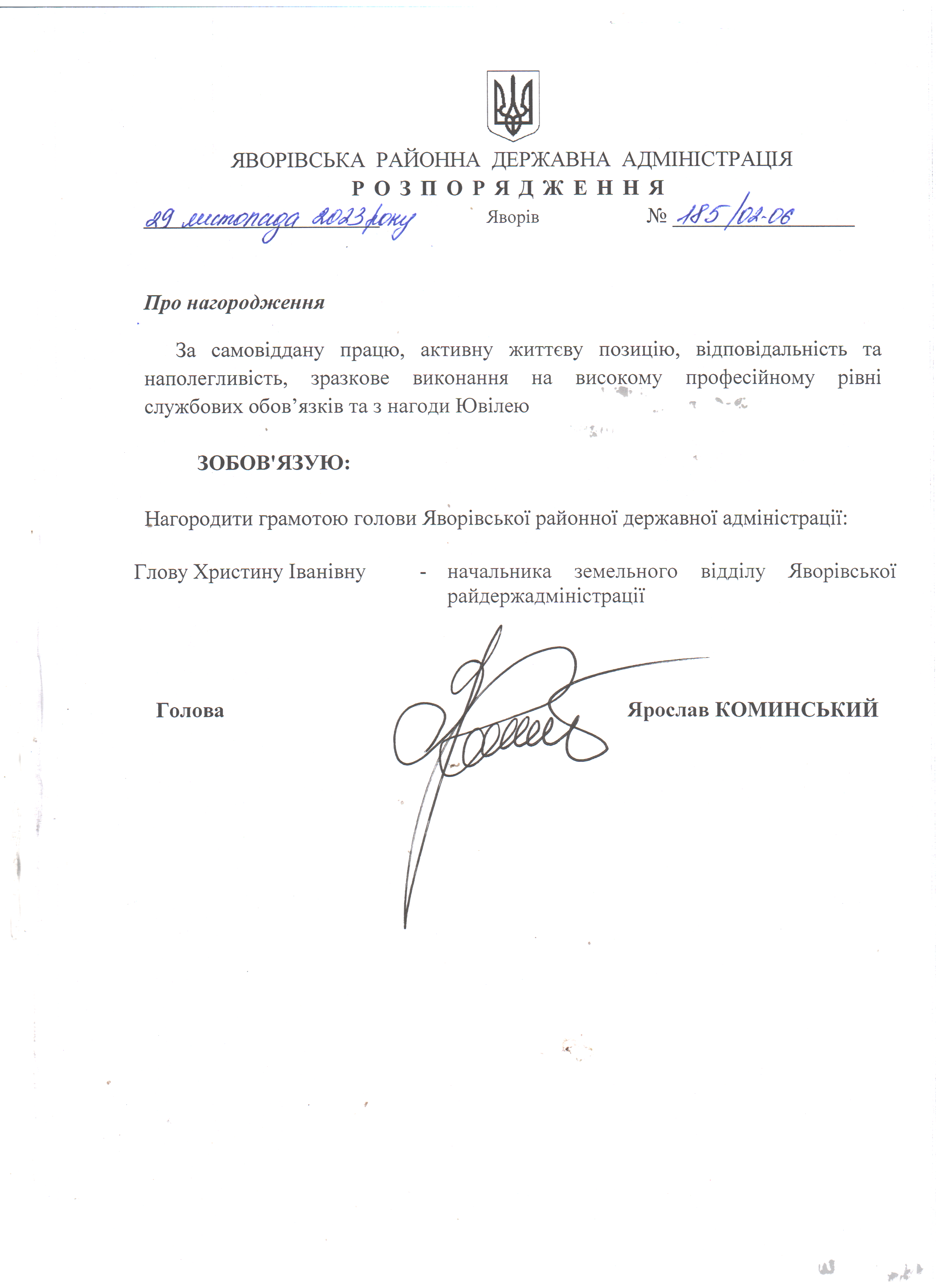 185/02-06 2023-11-29 Про нагородження
