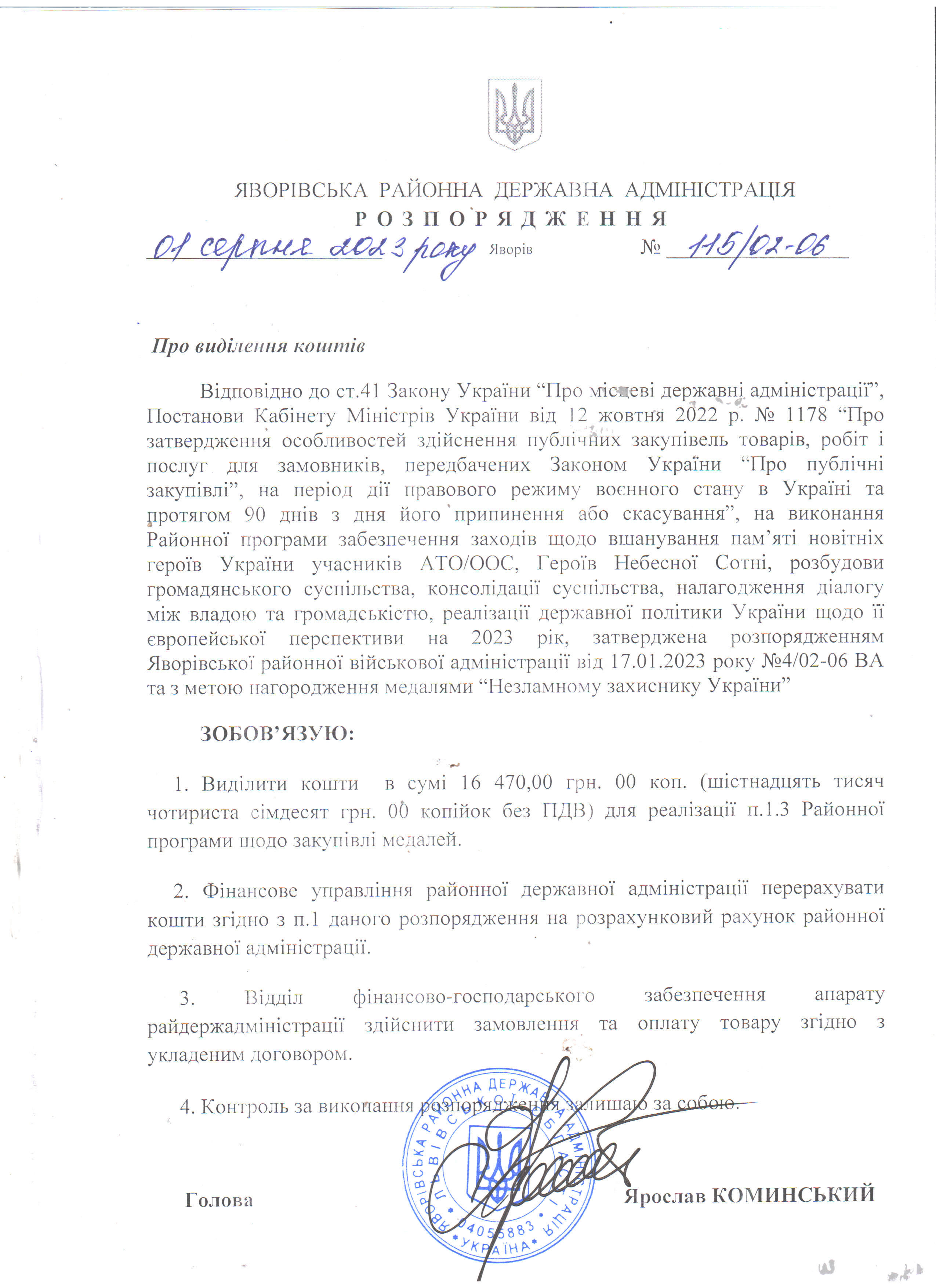 115/02-06 2023-08-01 Про виділення коштів
