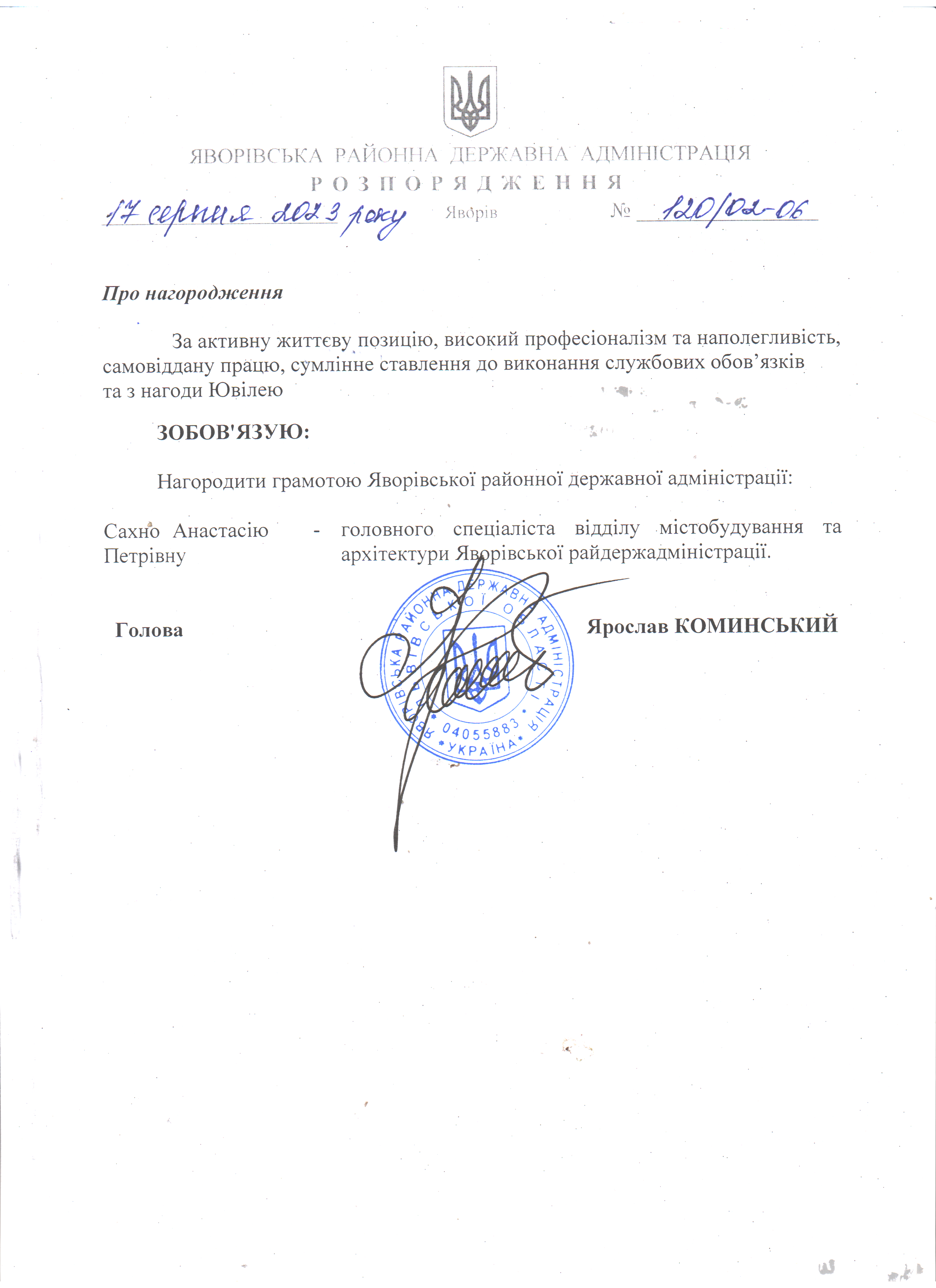 120/02-06 2023-08-17 Про нагородження