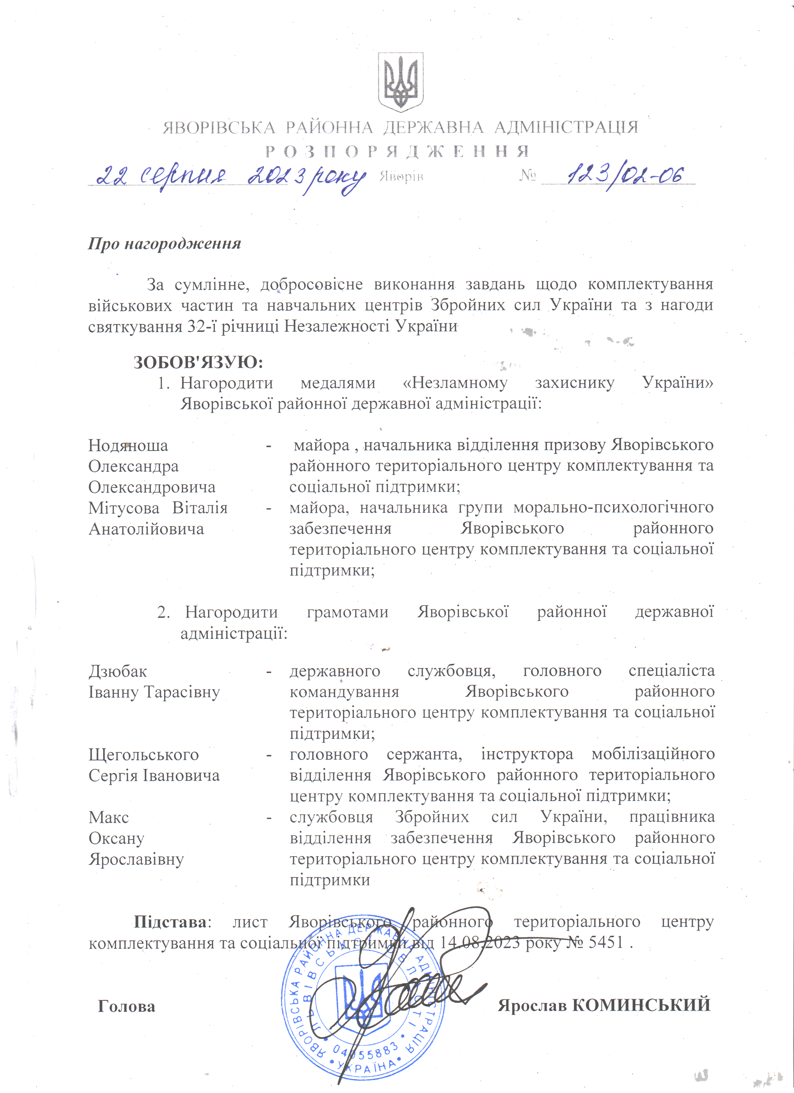 123/02-06 2023-08-22 Про нагородження