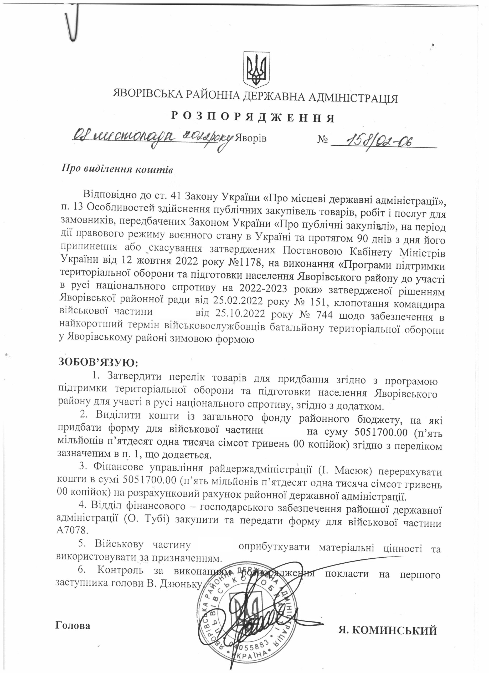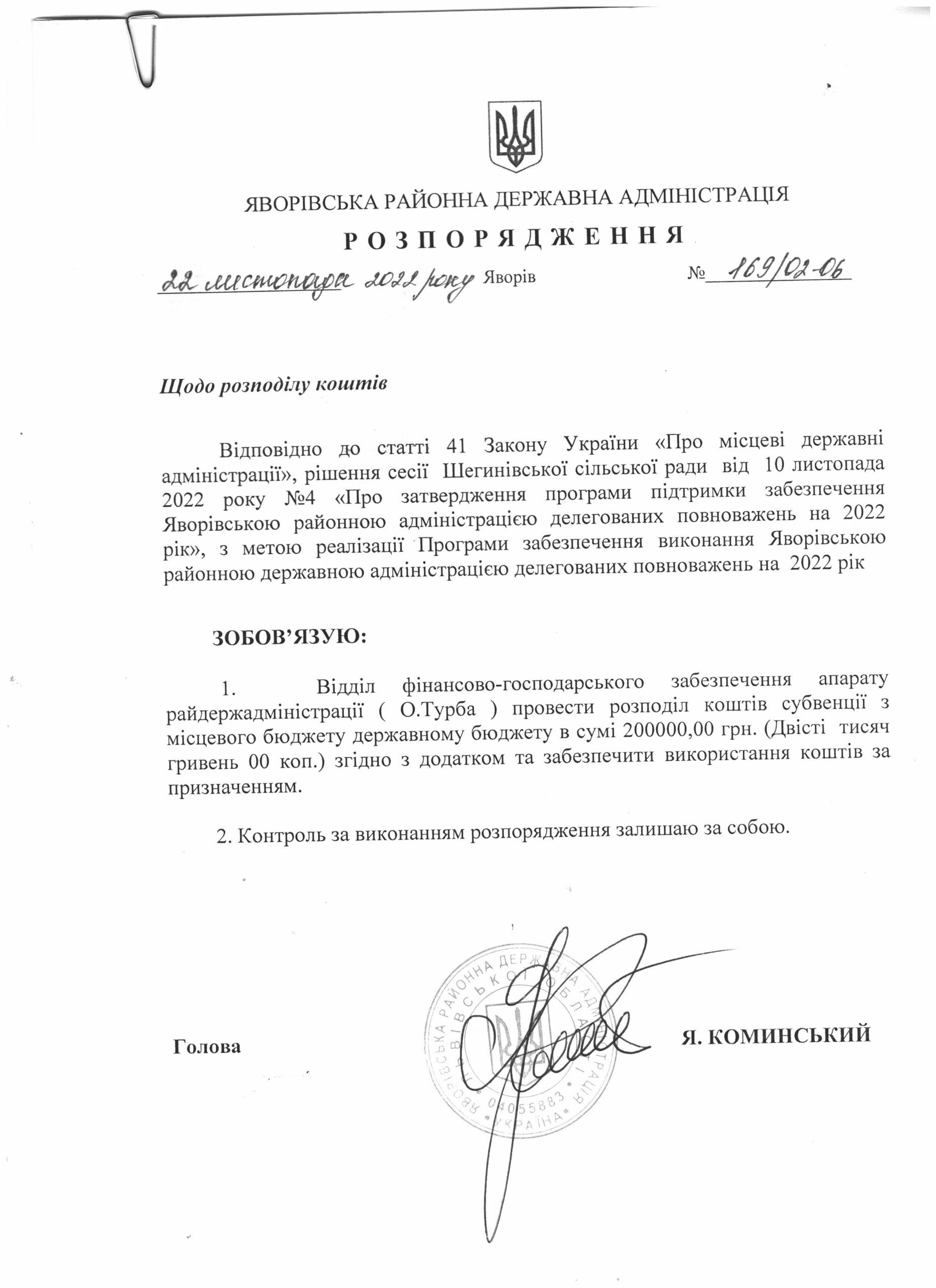 Про виділення коштів |