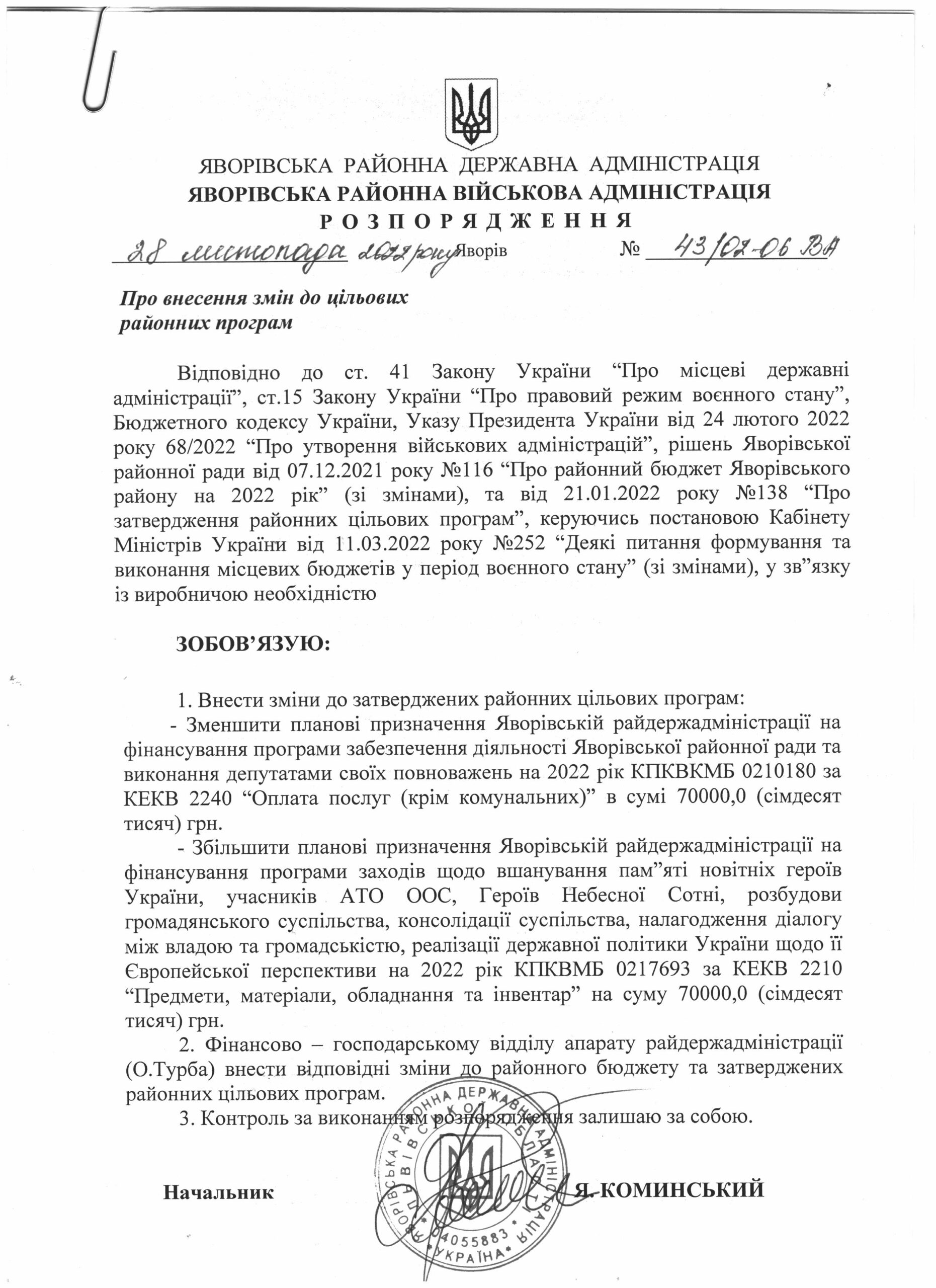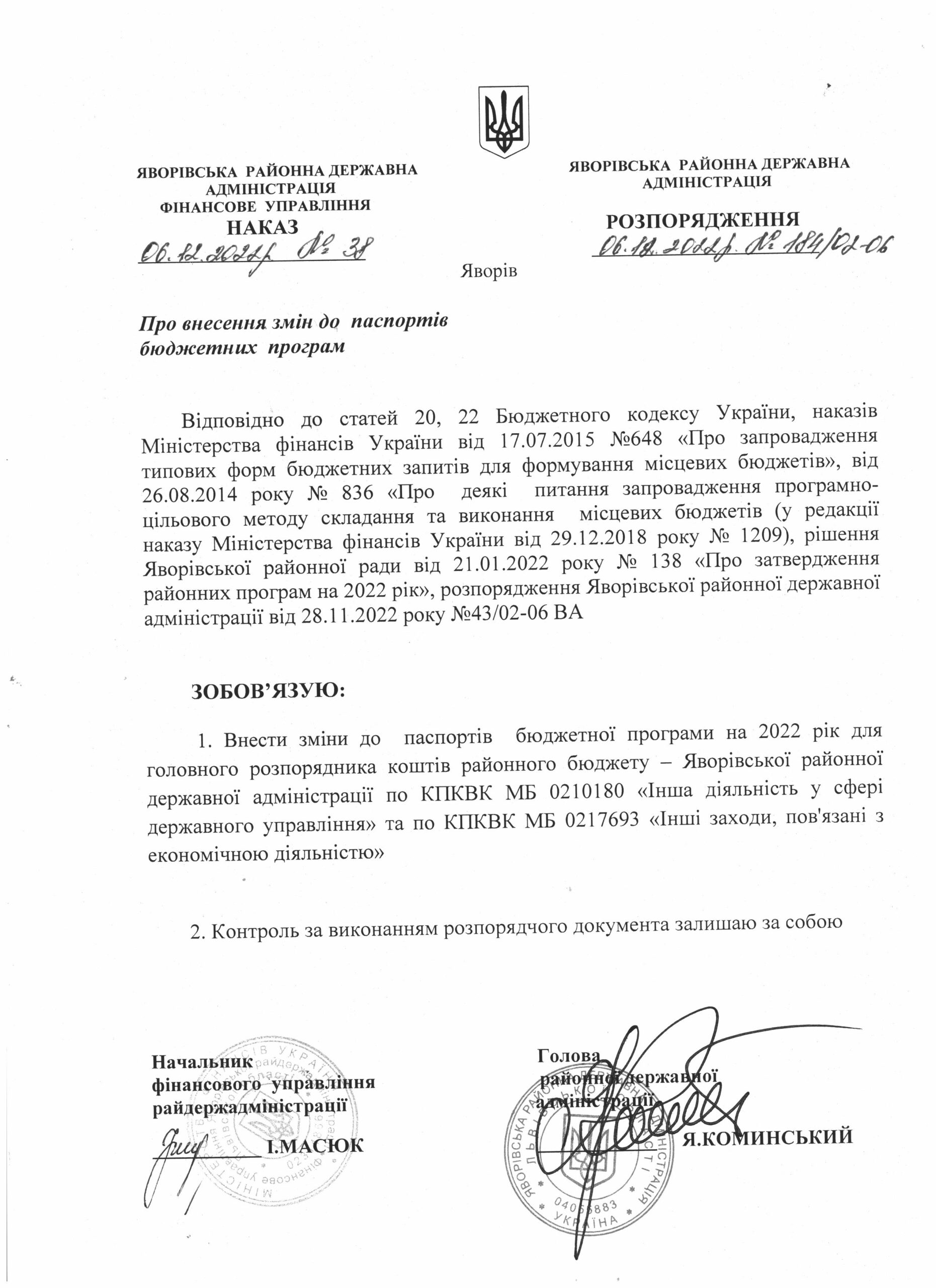 Про внесення змін до районного бюджету Яворівського району на 2022 рік |