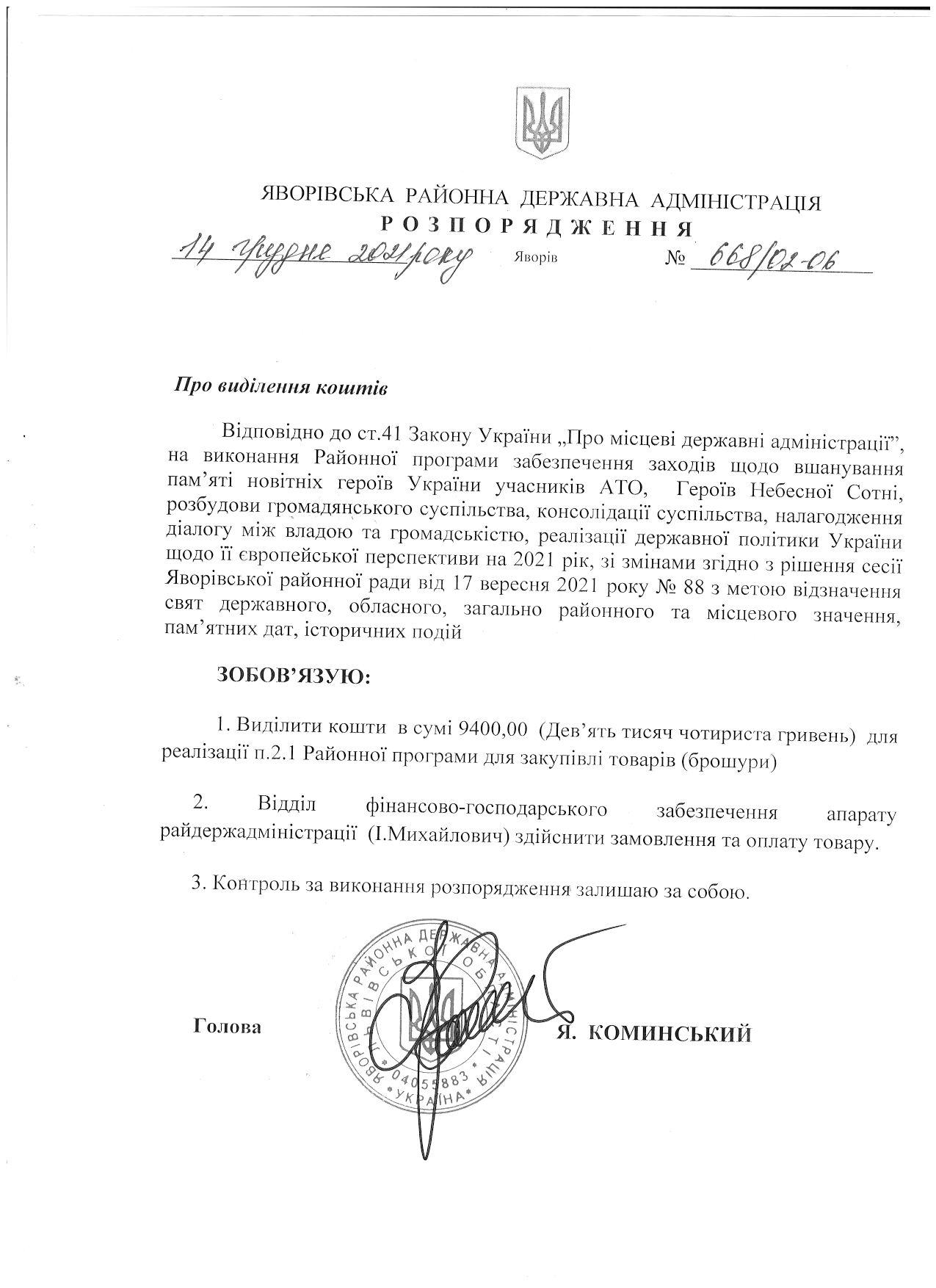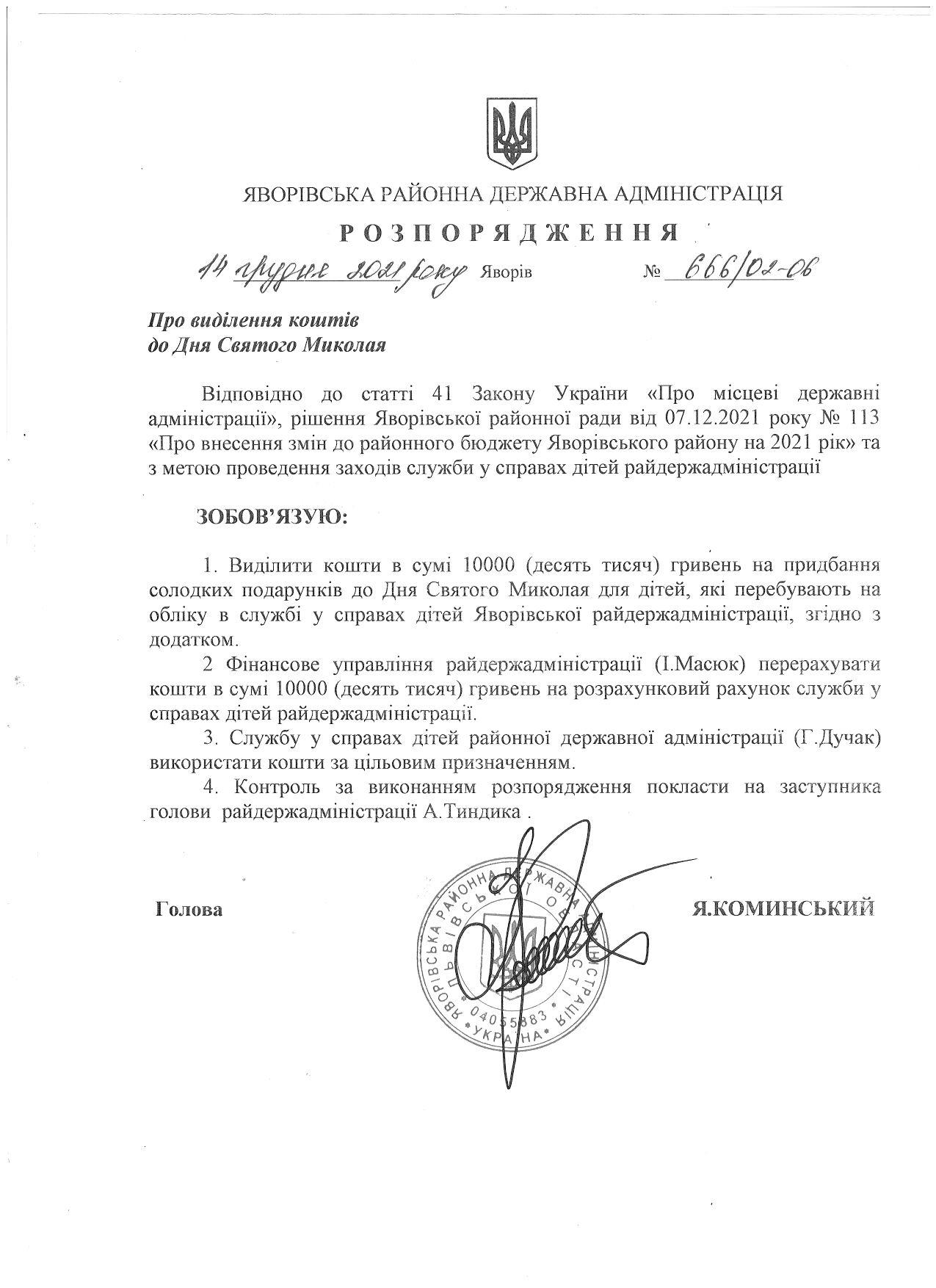 666/02-06 2021-12-14 Про виділення коштів до Дня Святого Миколая