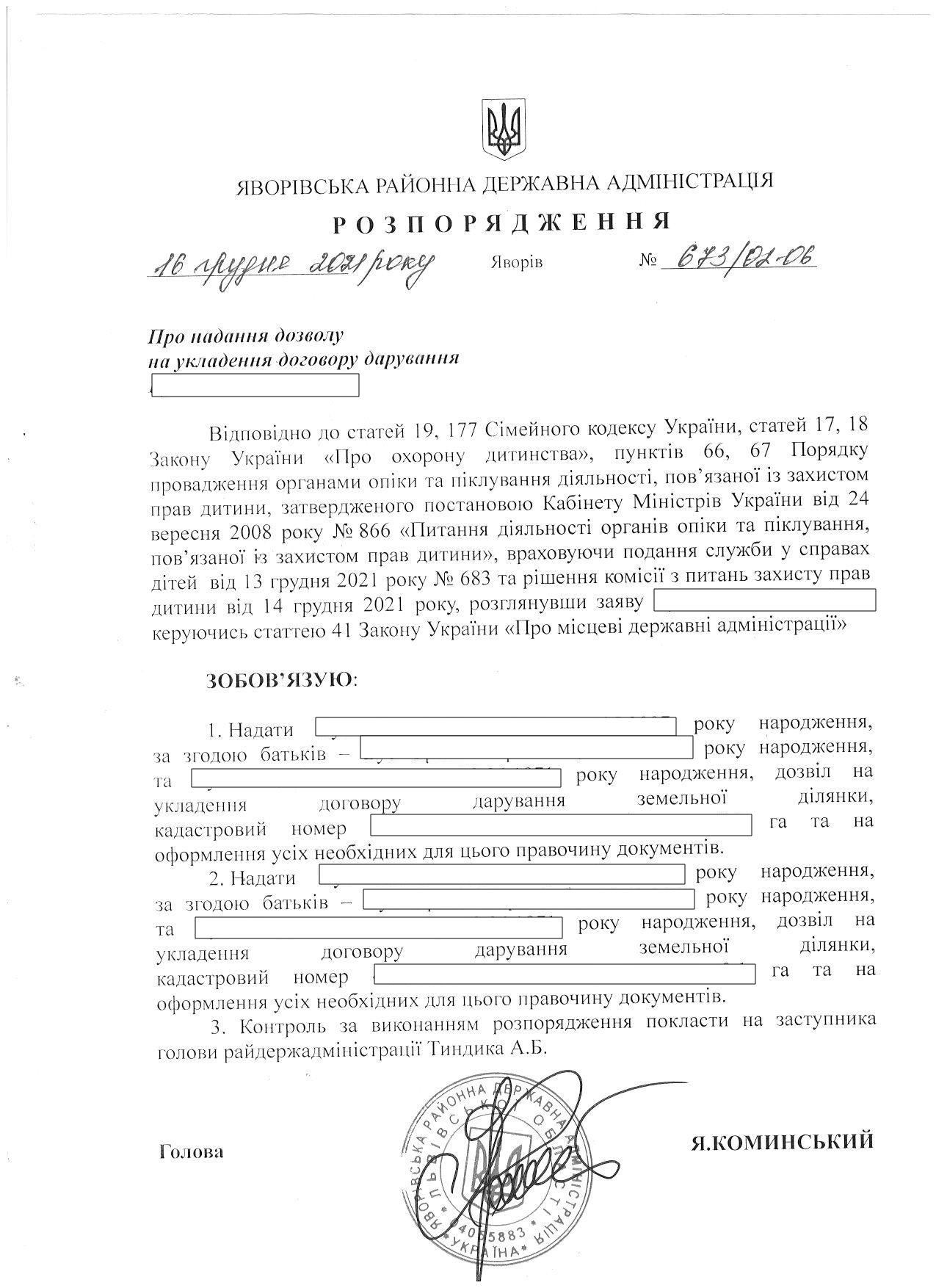 673/02-06 2021-12-16 Про надання дозволу на укладення договору дарування