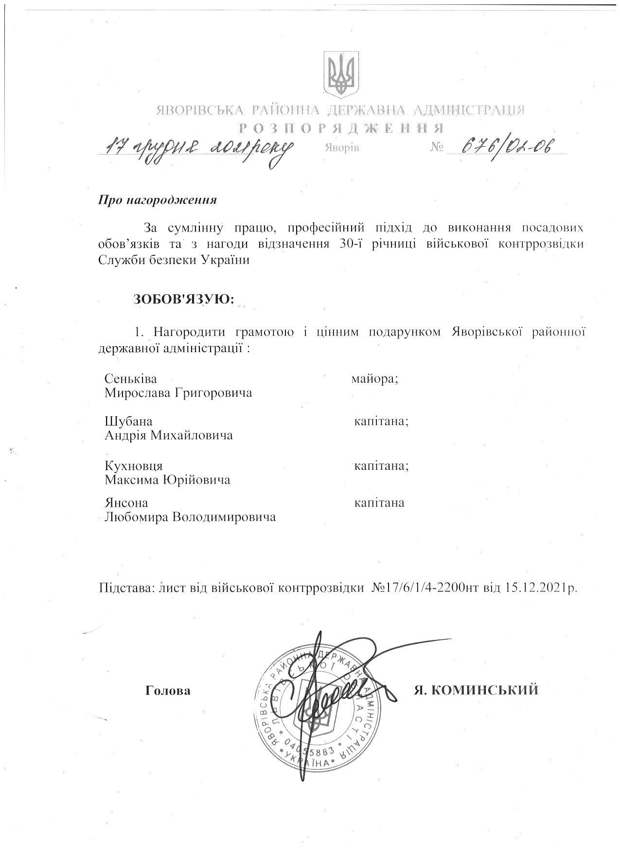 05/02-06 2022-01-17 Про надання доступу до державної таємниці службовим особам Яворівської райдержадміністрації (ДСК)