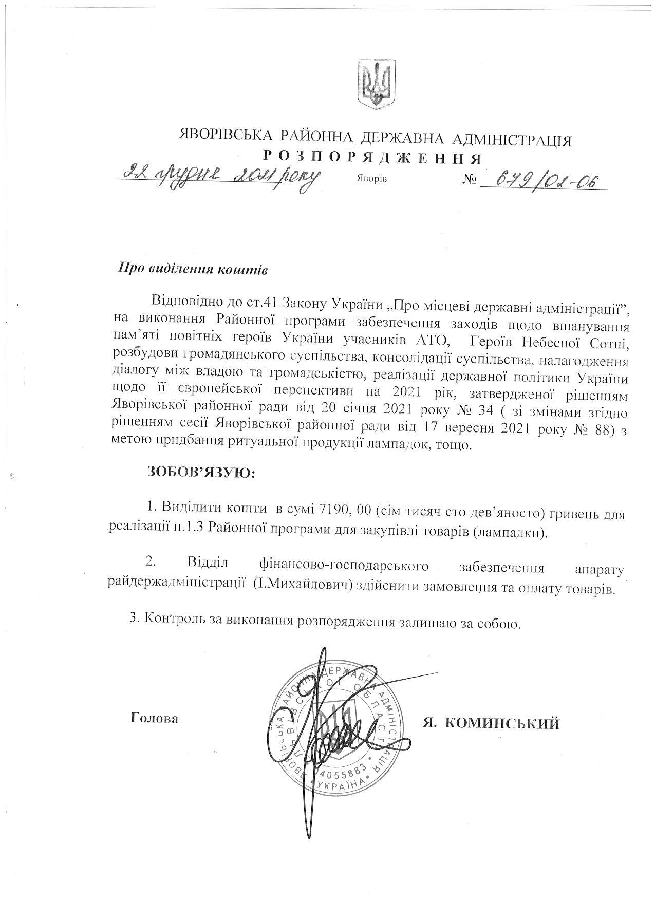 649/02-06 2021-12-06 Про надання грошової адресної допомоги
