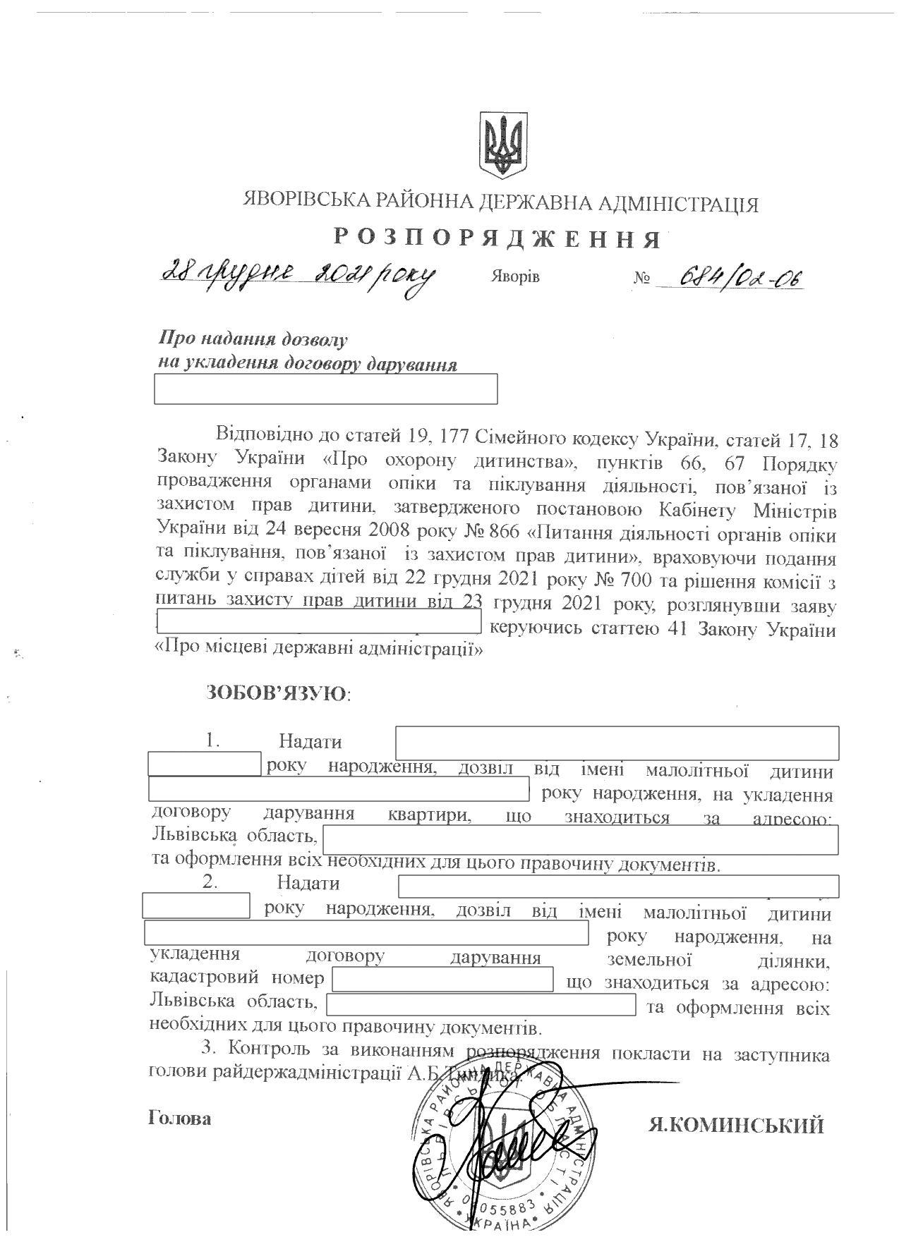 684/02-06 2021-12-28 Про надання дозволу на укладення договору дарування