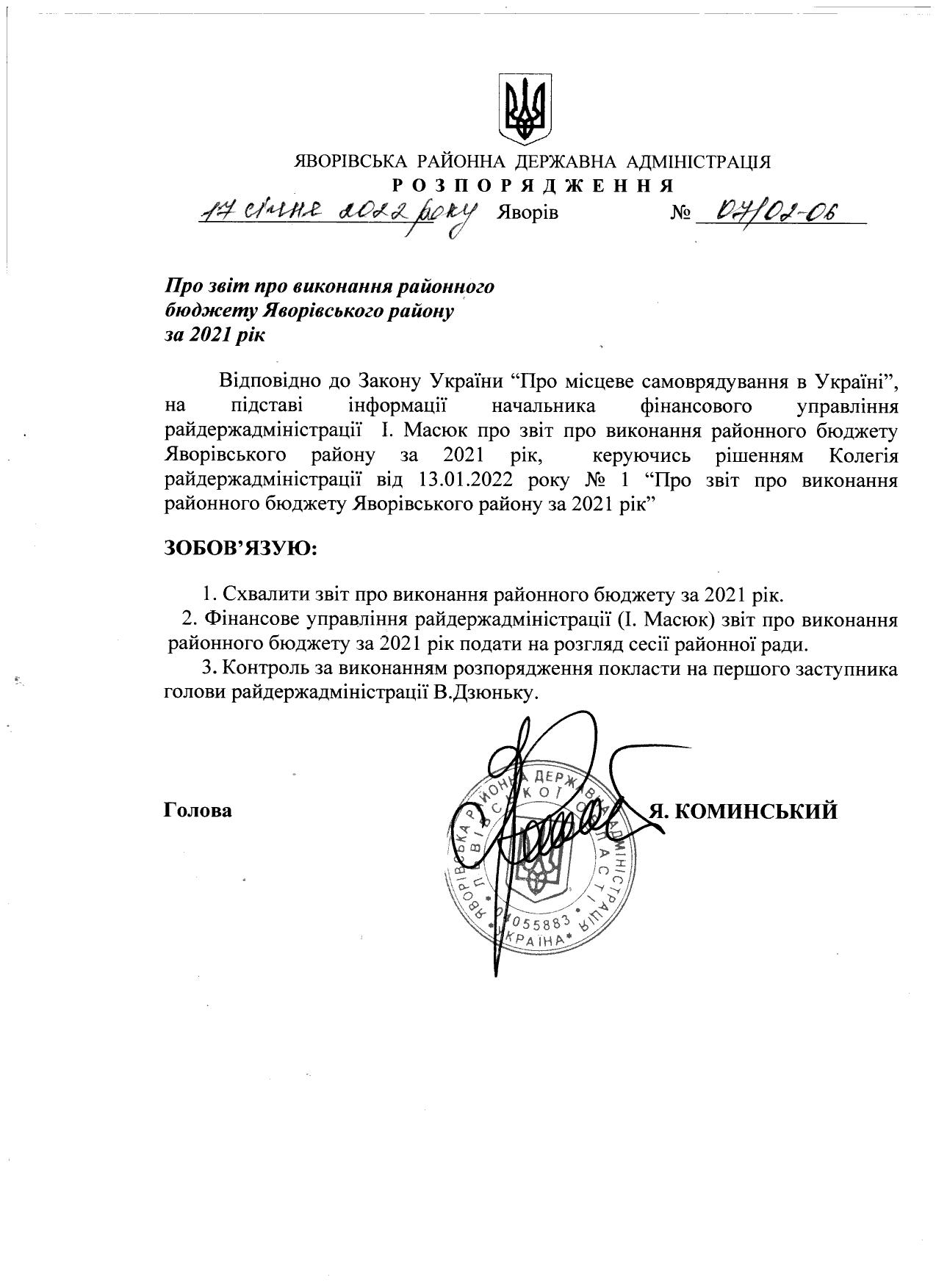 07/02-06 2022-01-17 Про звіт про виконання районного бюджету Яворівського району за 2021 рік
