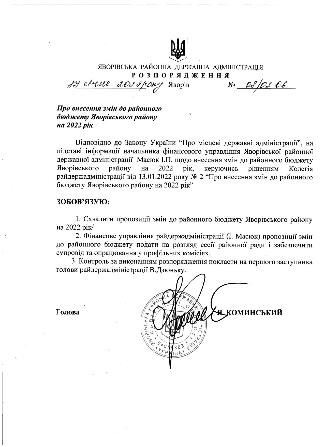 08/02-06 2022-01-17 Про внесення змін до районного бюджету Яворівського району на 2022 рік