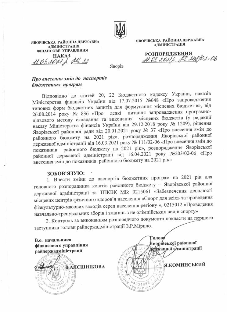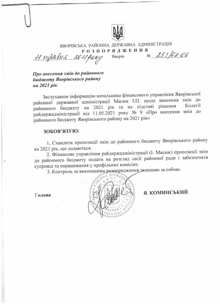 253/02-06 2021-05-11 Про внесення змін до районного бюджету Яворівського району на 2021 рік