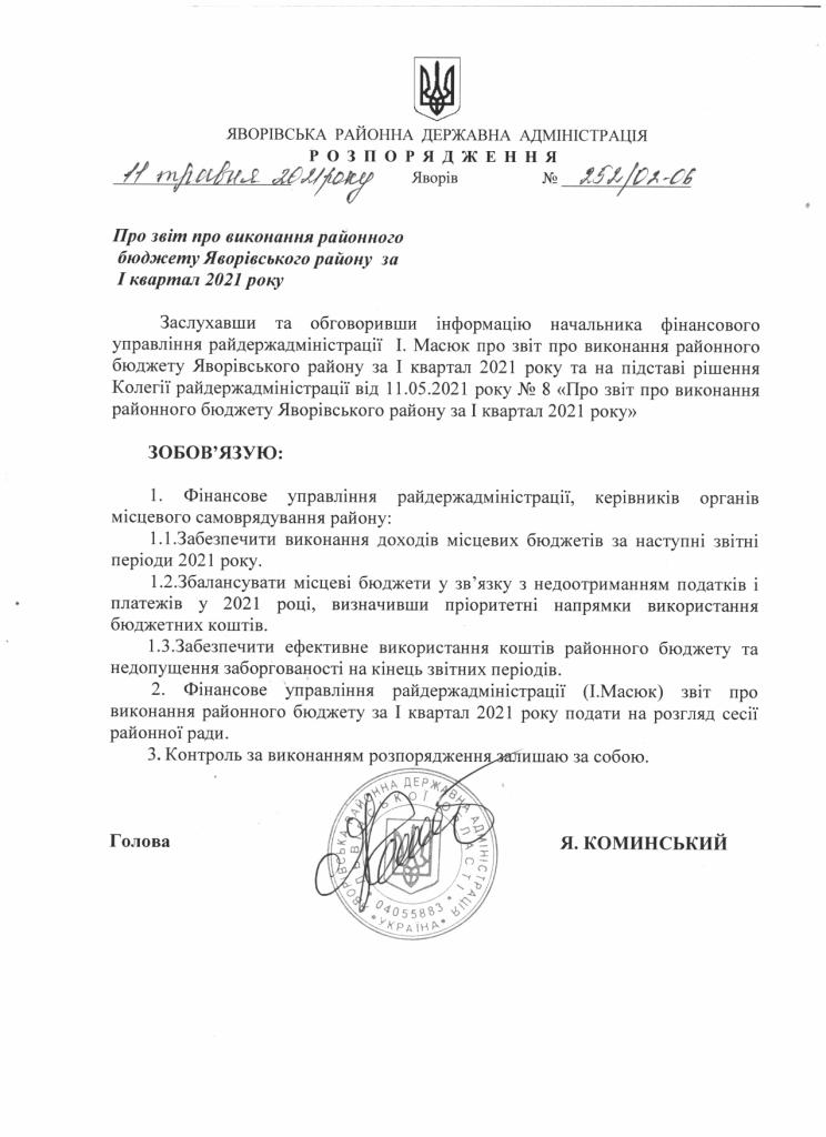 252/02-06 2021-05-11 Про звіт про виконанняирайонногои бюджету Яворівського району за I квартал 2021 року