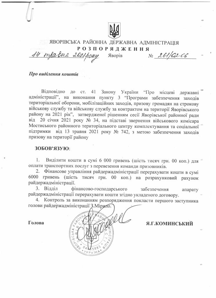 259/02-06 2021-05-13 Про склад позаштатної постійно діючої військово-лікарської комісії Яворівського району територіального центру комплектування та соціальної підтримки