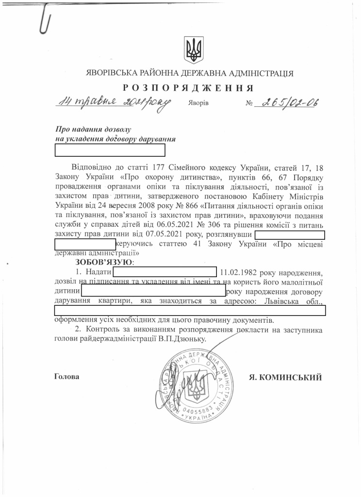 265/02-06 2021-05-14 Про надання дозволу на укладення договору дарування