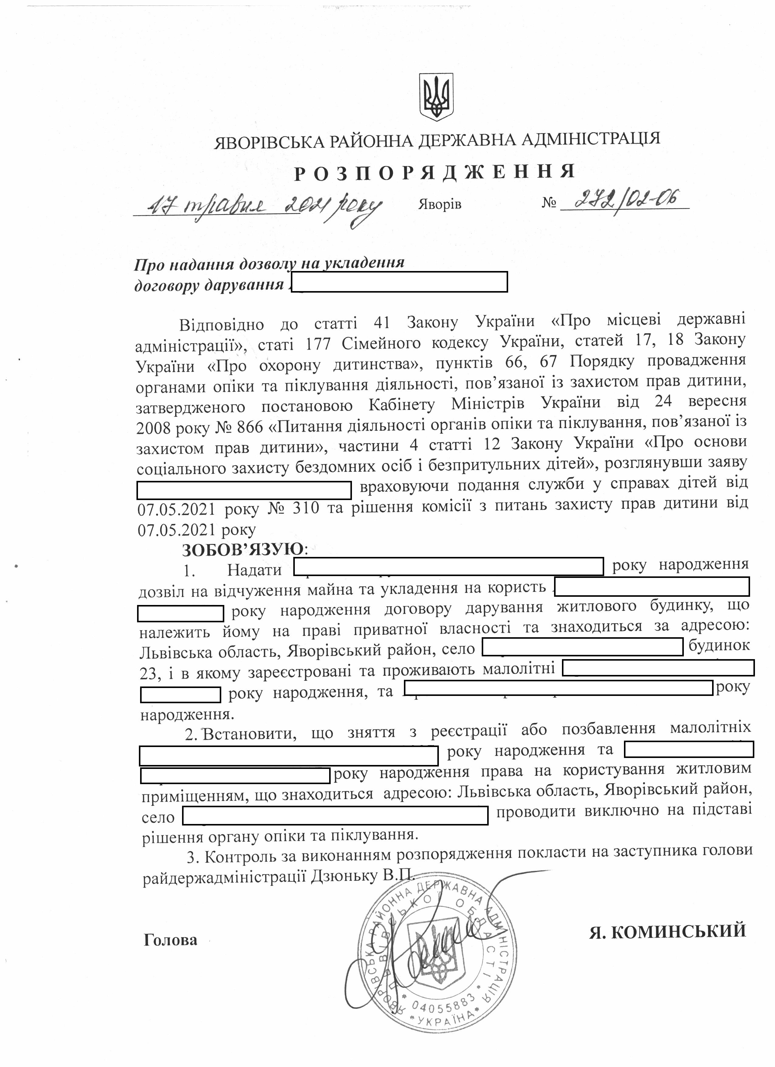 272/02-06 2021-05-17 Про надання дозволу на укладення договору дарування