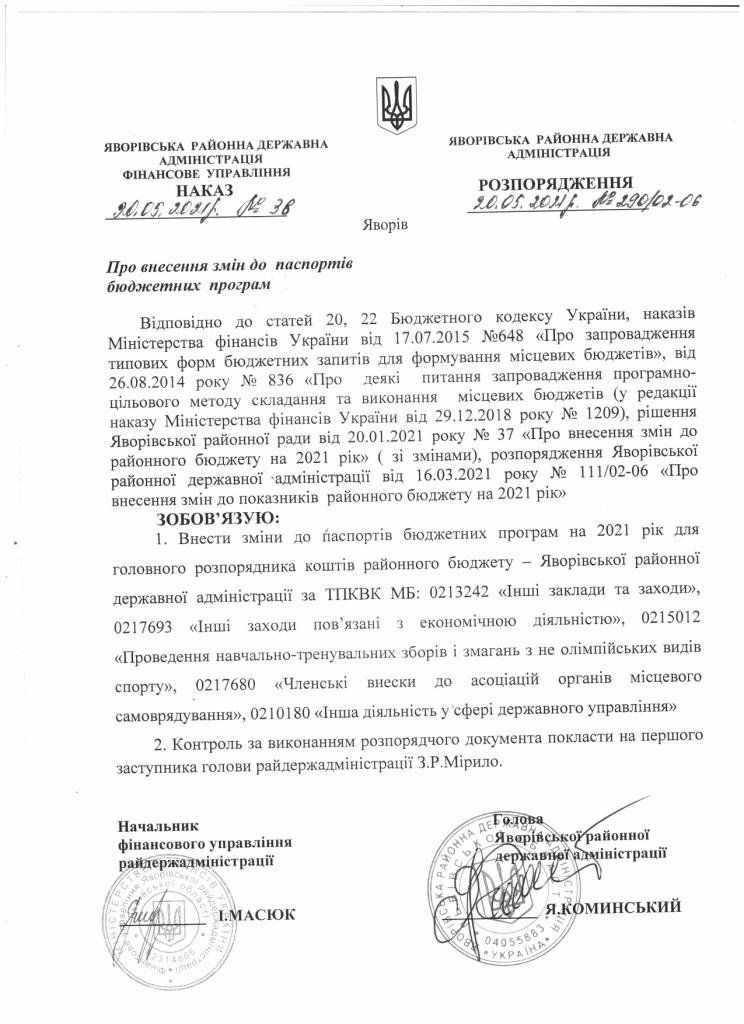 290/02-06 2021-05-20 Про внесення змін до паспортів бюджетних програм