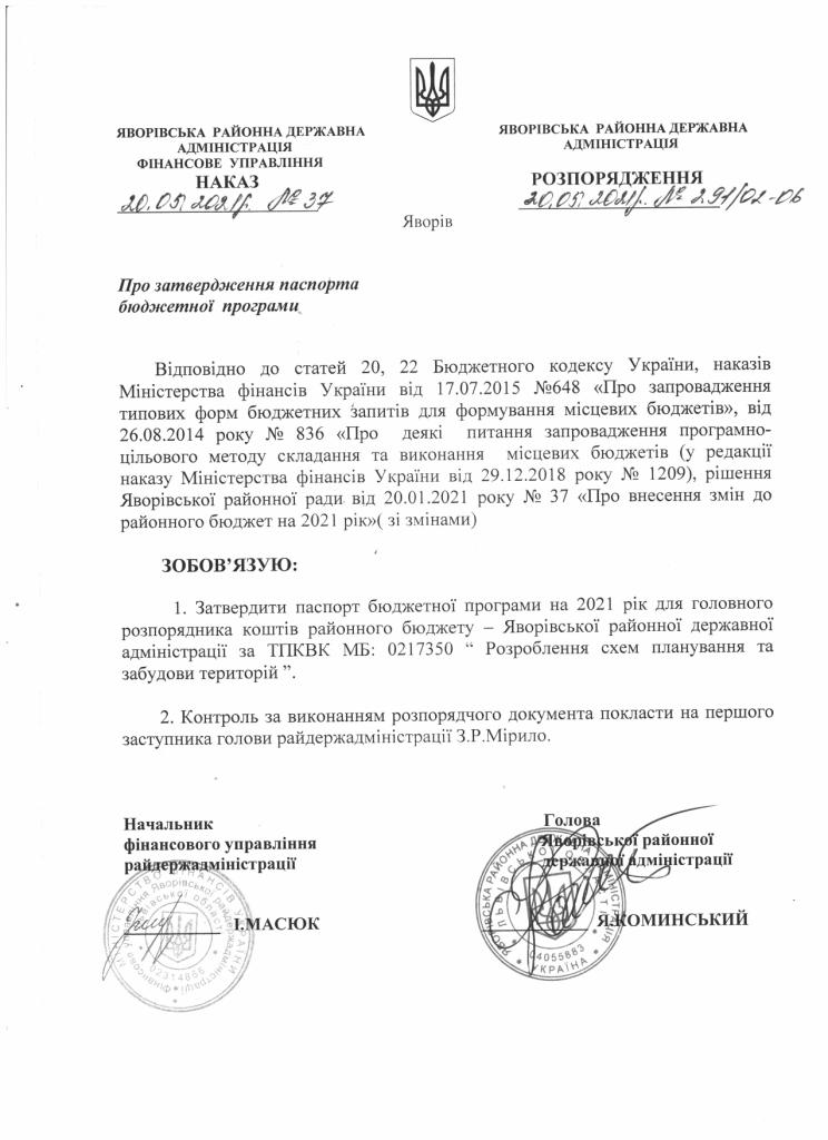 291/02-06 2021-05-20 Про затвердження паспорта бюджетної програми