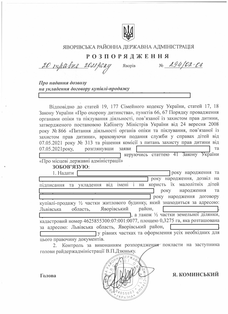 294/02-06 2021-05-20 Про надання дозволу на укладення договору купівлі-продажу