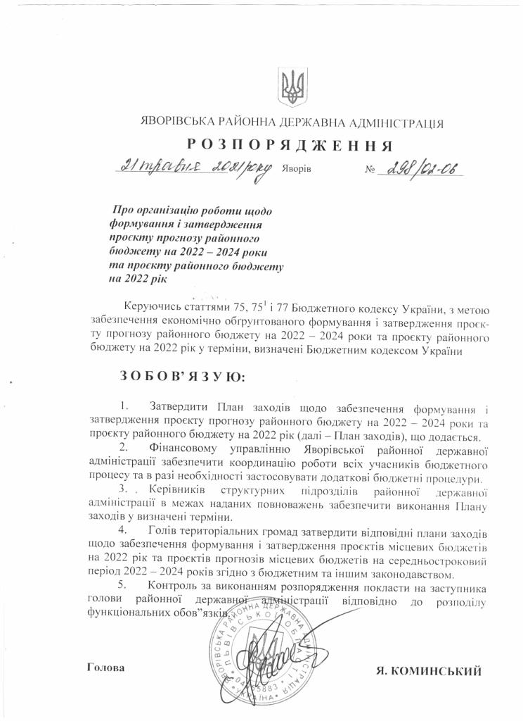 298/02-06 2021-05-21 Про організацію роботи щодо формування і затвердження проєкту прогнозу районного бюджету на 2022-2024 роки та проєкту районного бюджету на 2022 рік