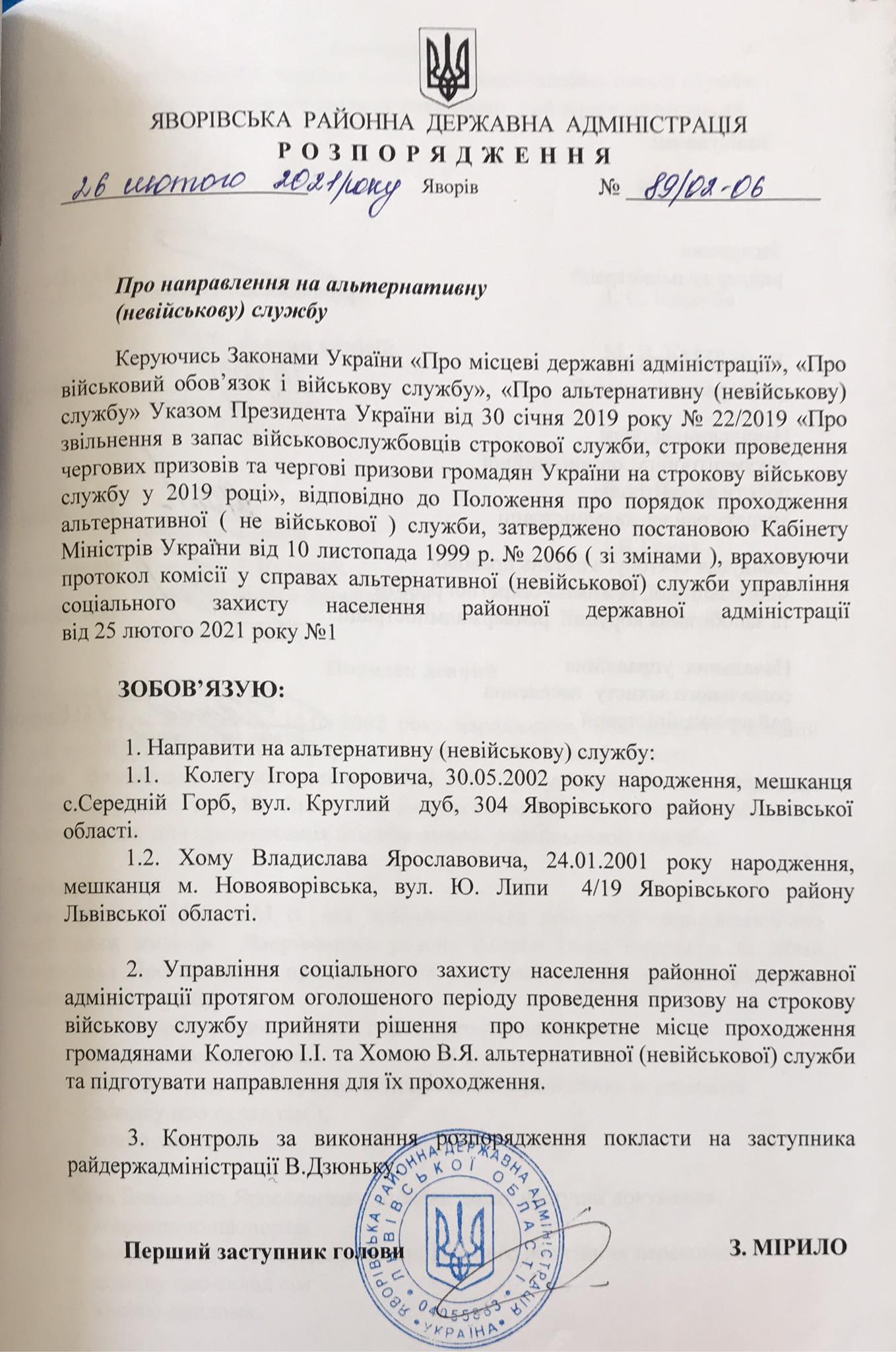 89/02-06 2021-02-26 Про направлення на альтернативну (невійськову) службу