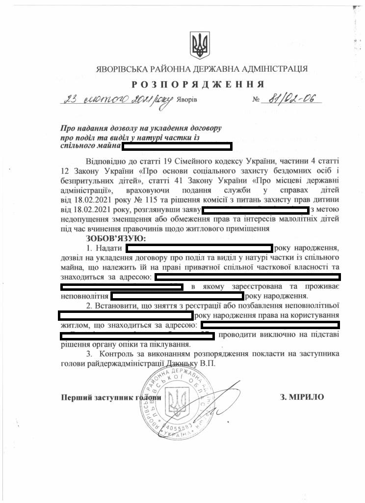 81/02-06 2021-02-23 Про надання дозволу на укладення договору про поділ та виділ у натурі частки із спільного майна
