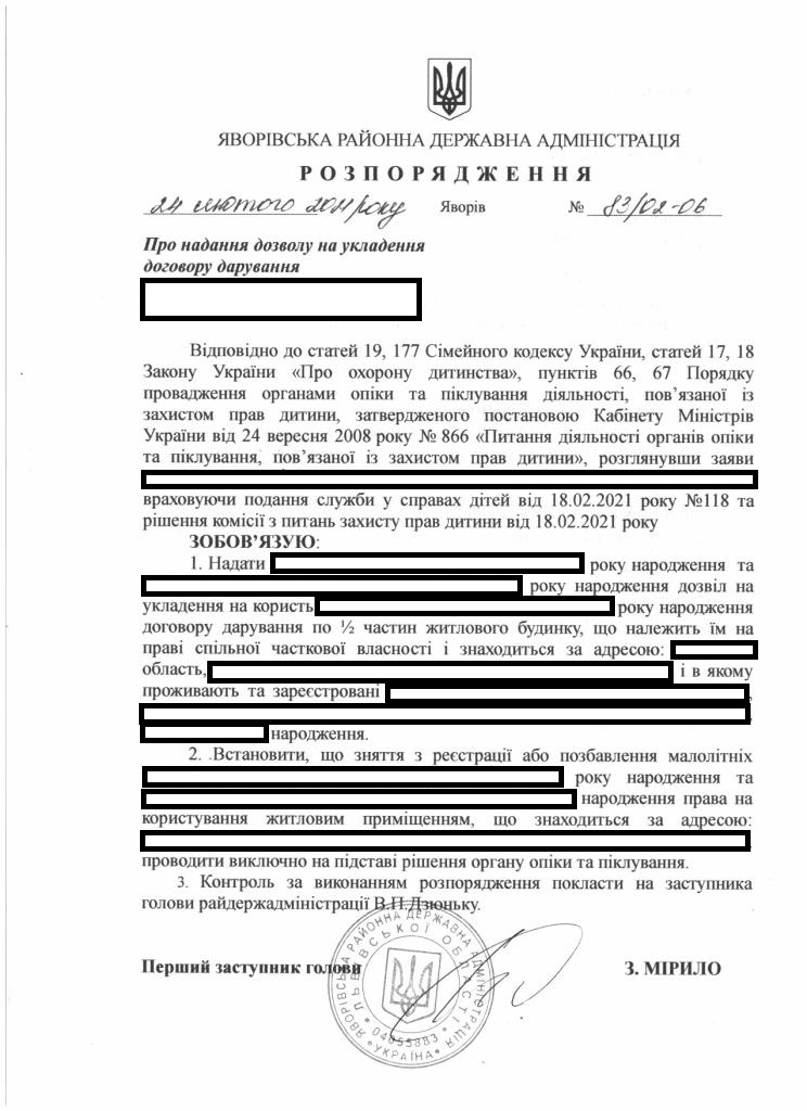 83/02-06 2021-02-24 Про надання дозволу на укладення договору дарування