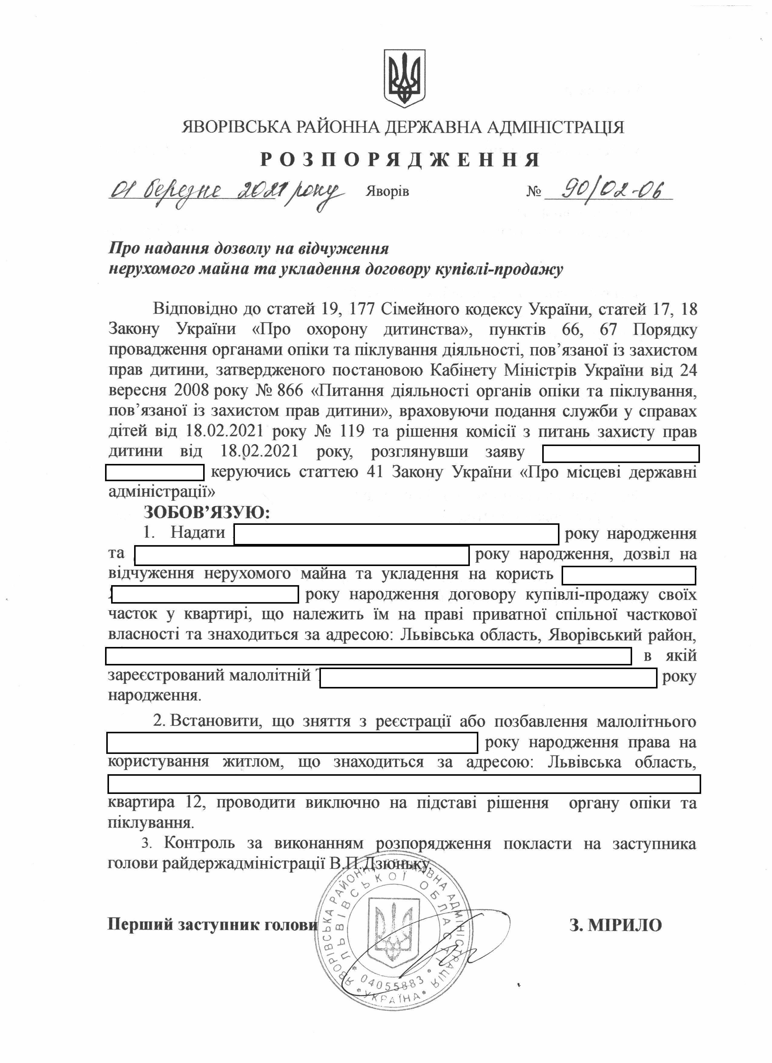 90/02-06 2021-03-01 Про надання дозволу на відчуження нерухомого майна та укладення договору купівлі-продажу