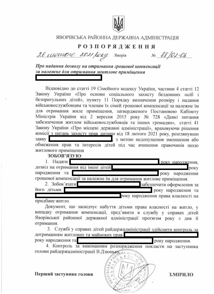 88/02-06 2021-02-26 Про надання дозволу на отримання грошової компенсації за належне для отримання житлове приміщення