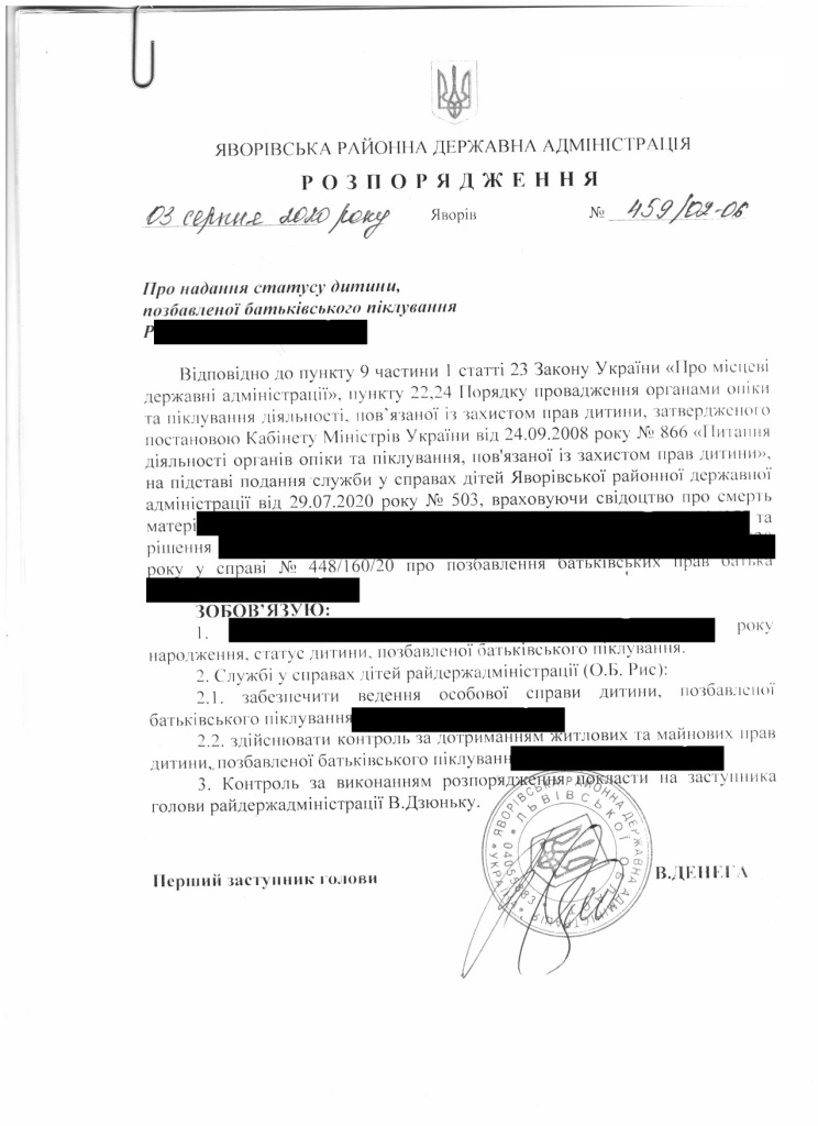Про надання статусу дитини, позбавленої батьківського піклування |