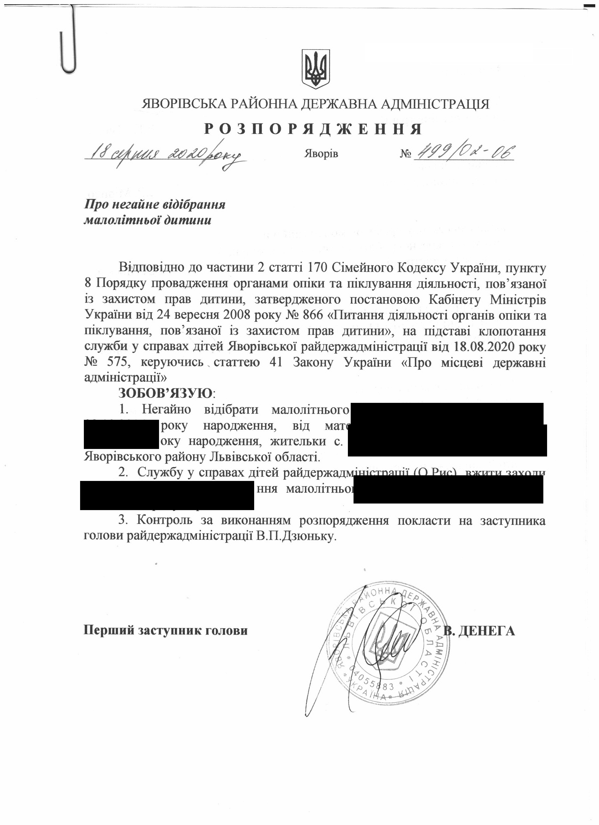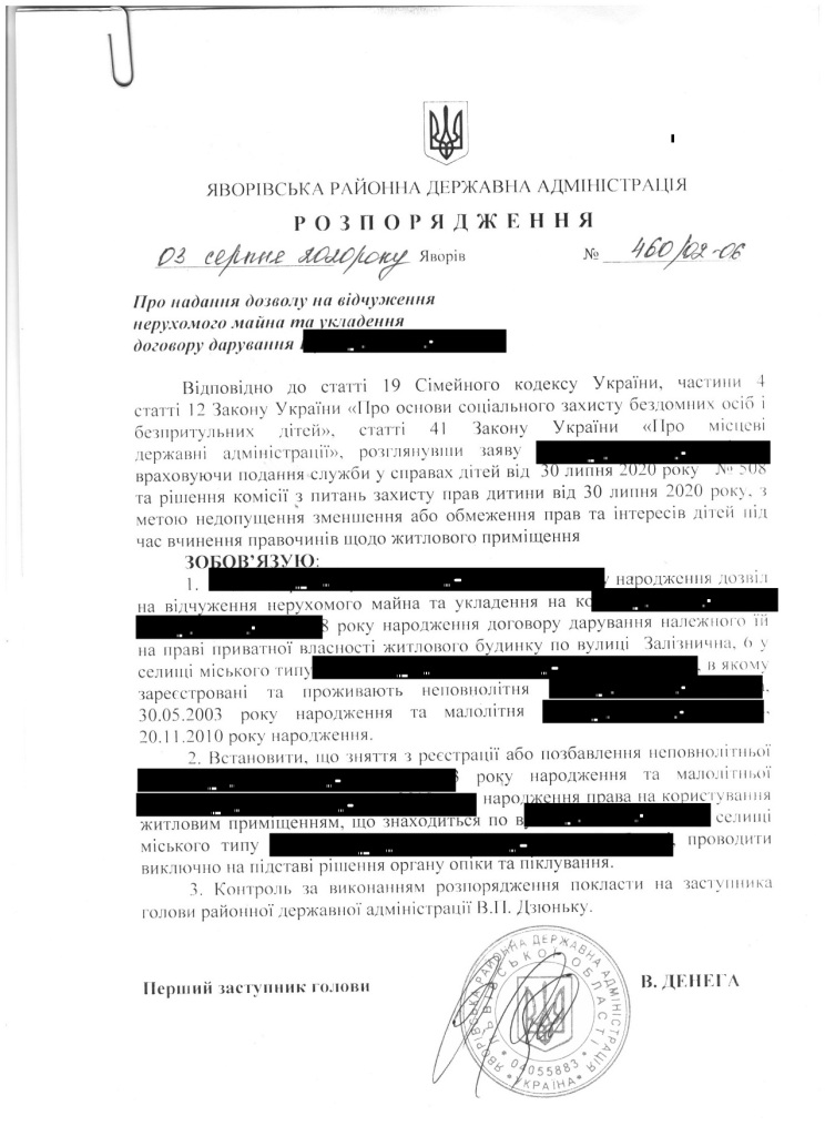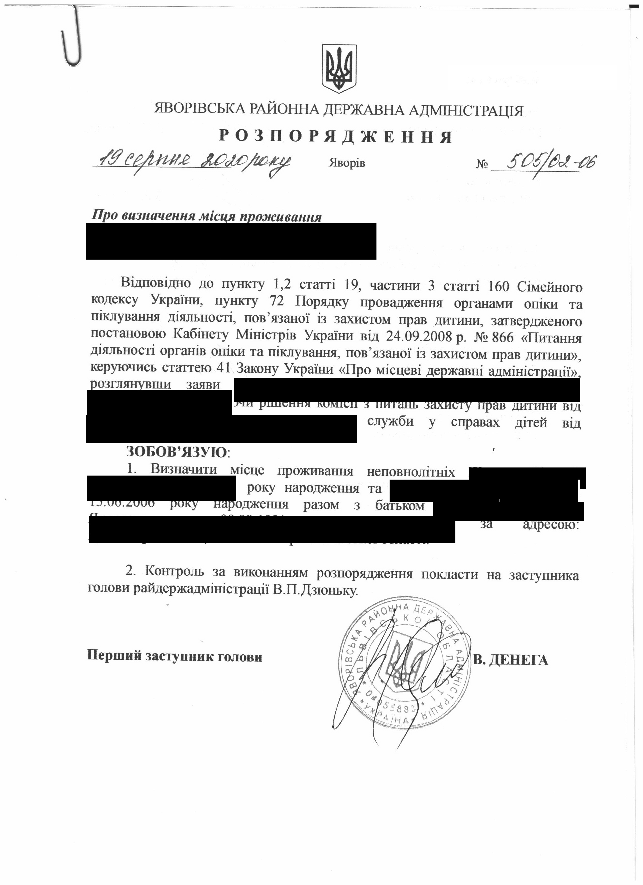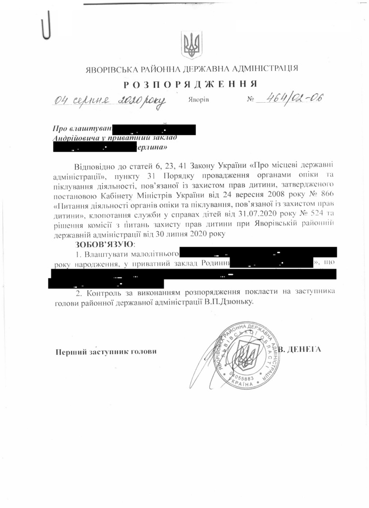 Про влаштування дитини у приватний заклад Родинний дім "Жива перлина" |