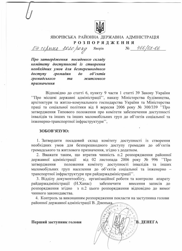 Про затвердження посадового складу комітету доступності із створення необхідних умов для безперешкодного доступу громадян до об'єктів |