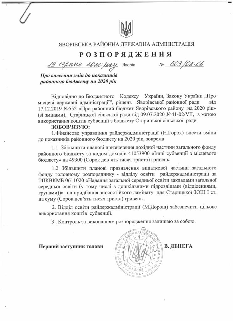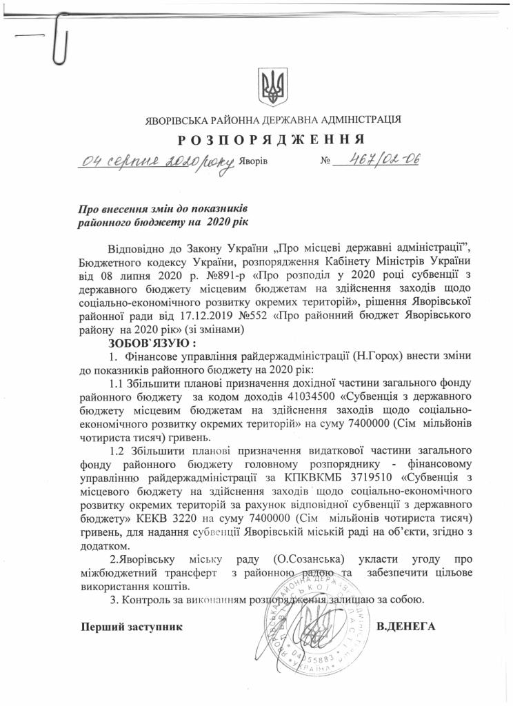 Про внесення змін до показників районного бюджету на 2020 рік |