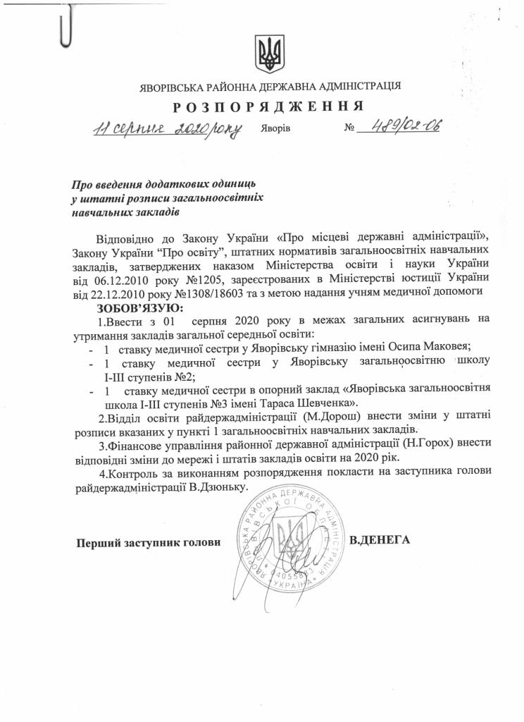 Про введення додаткових одиниць у штатні розписи загальноосвітніх навчальних закладів |