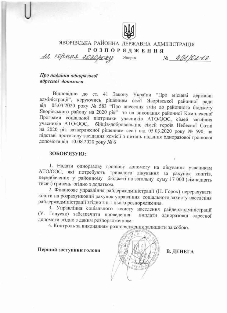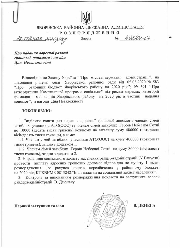 Про надання адресної разової грошової допомоги з нагоди Дня Незалежності |