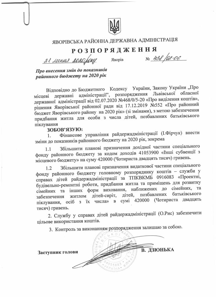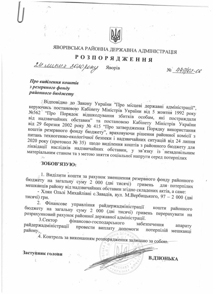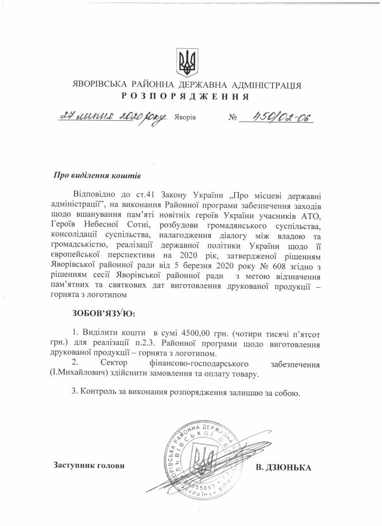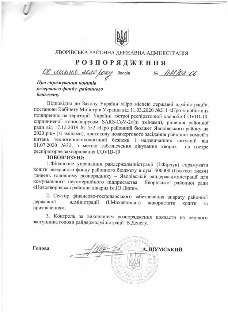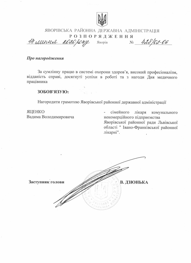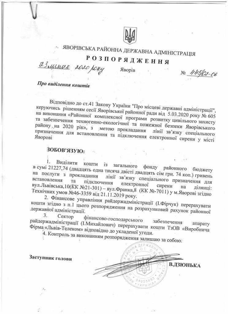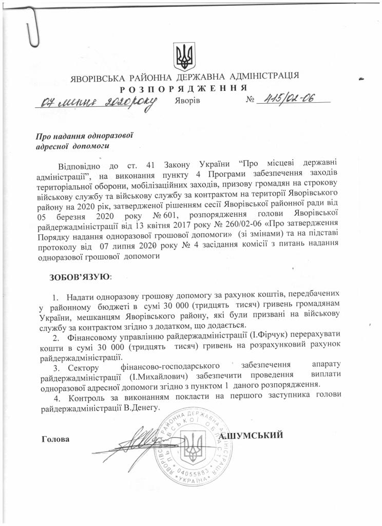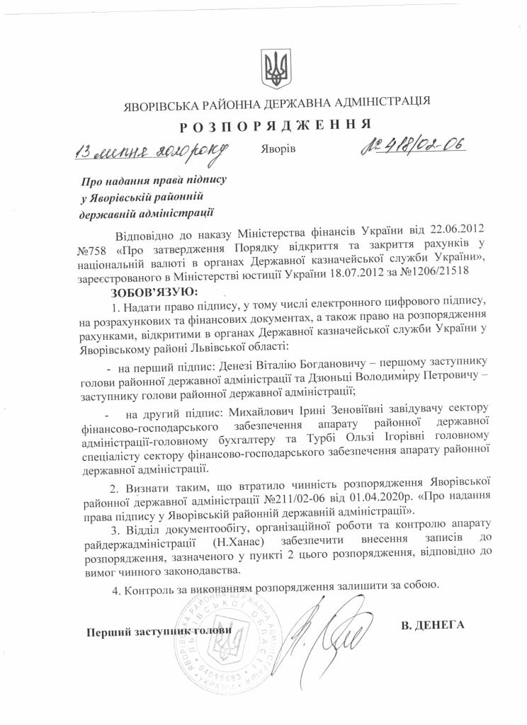 Про надання права підпису у Яворівській районній державній адміністрації |