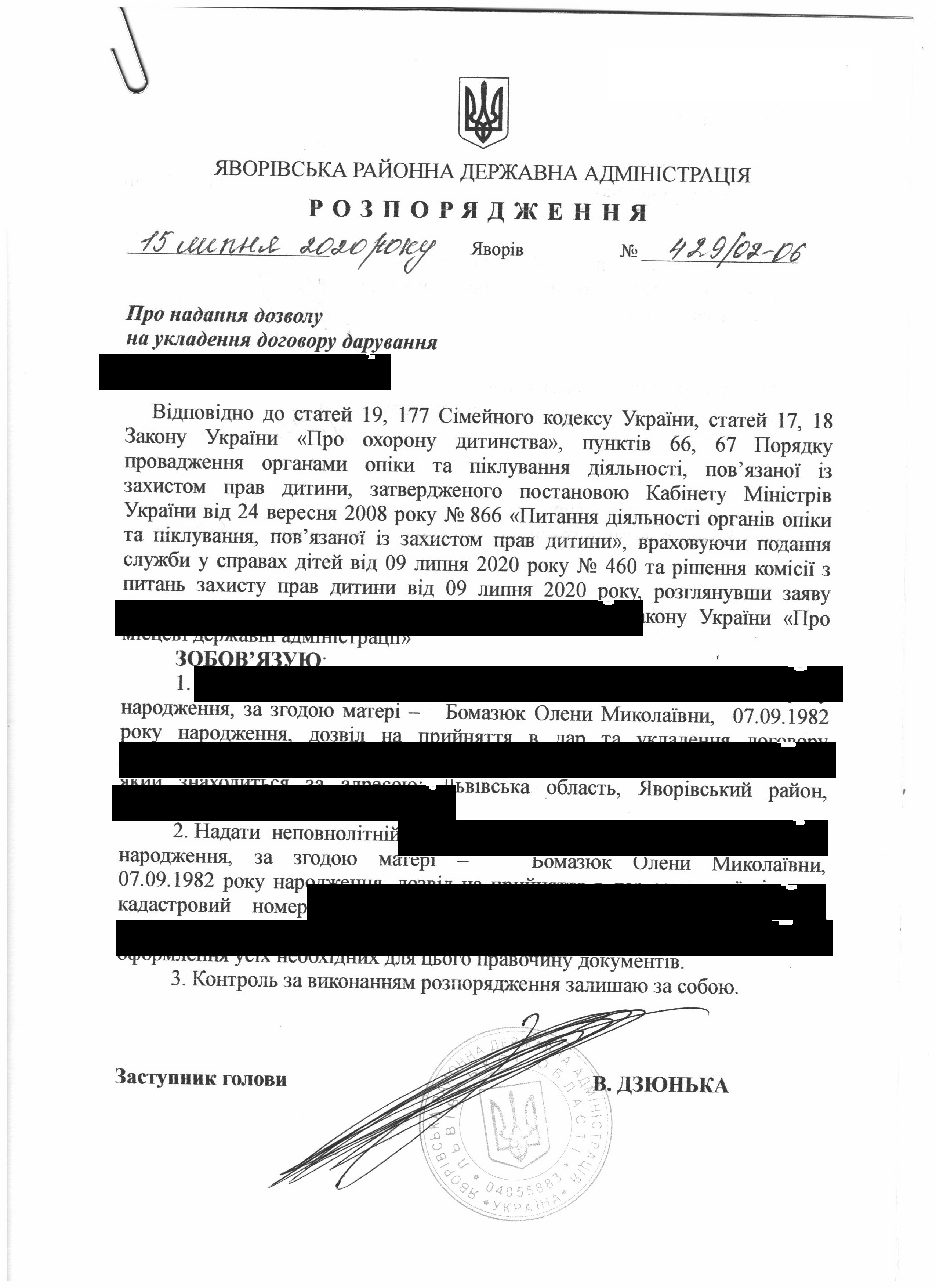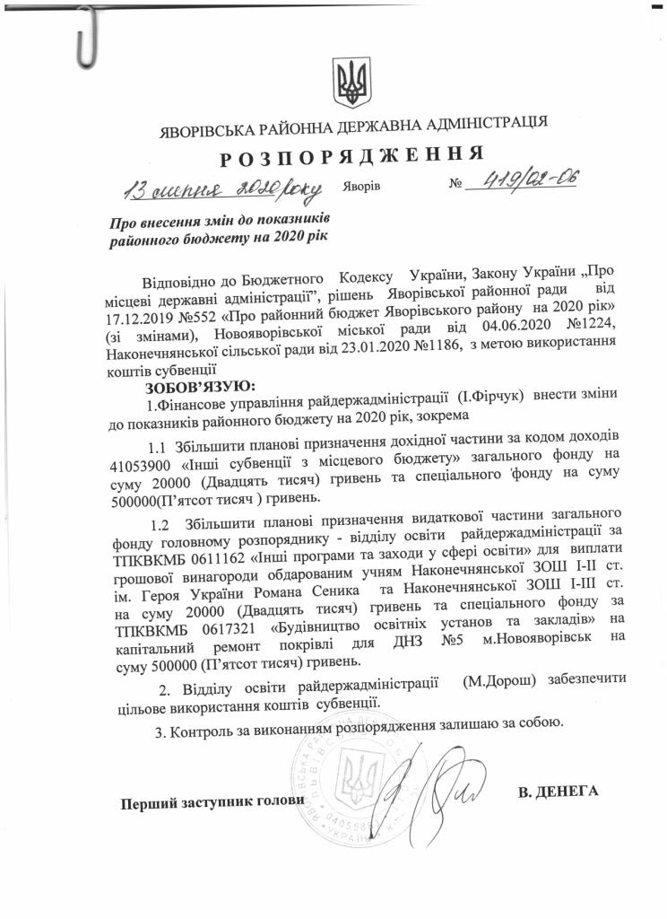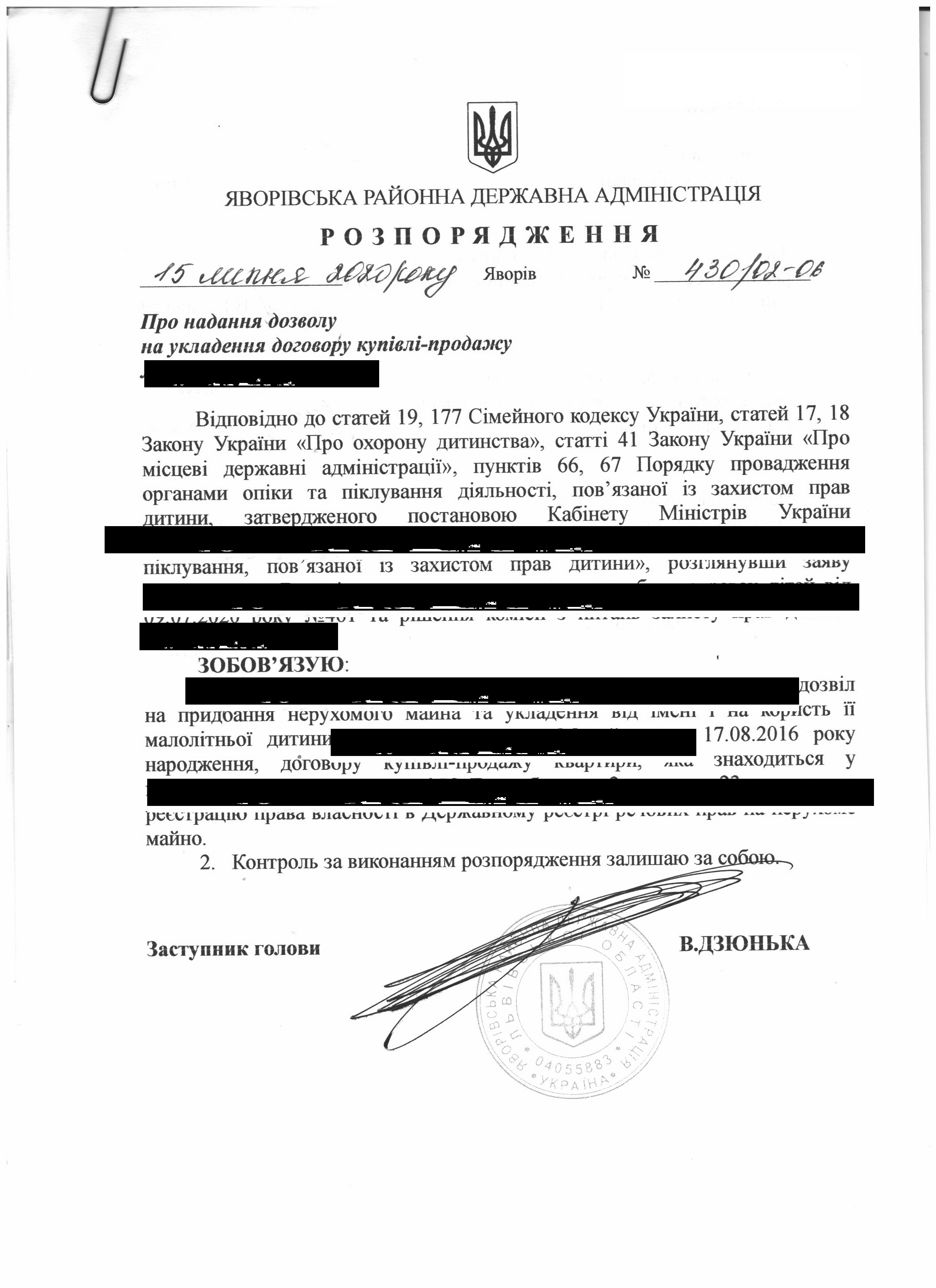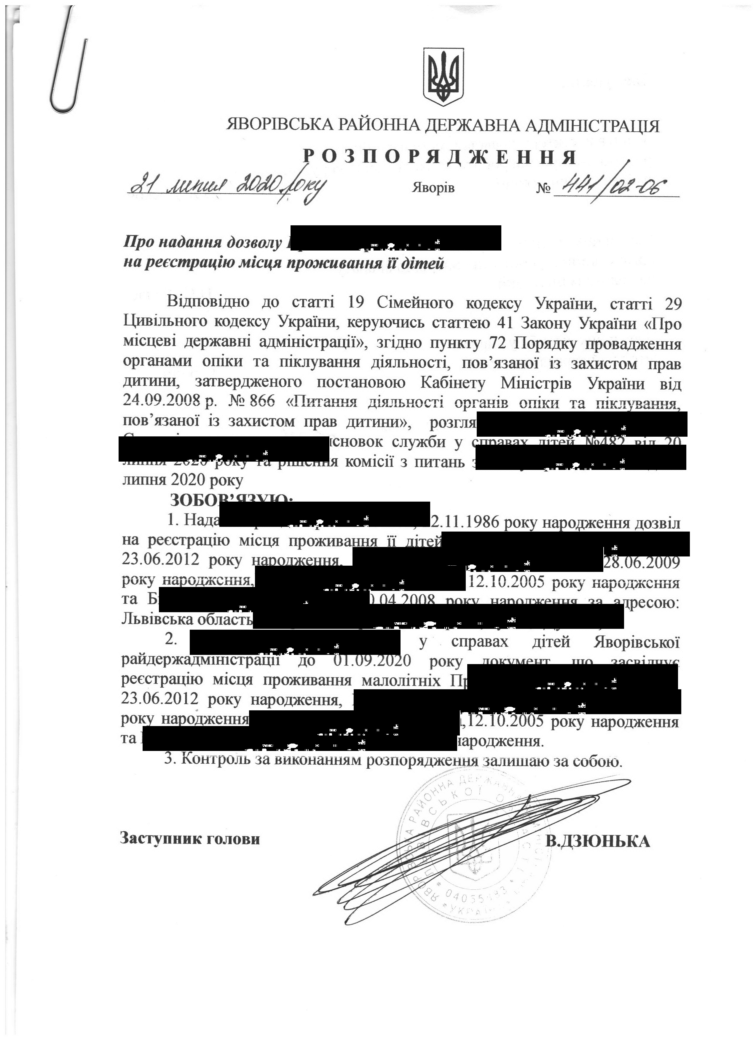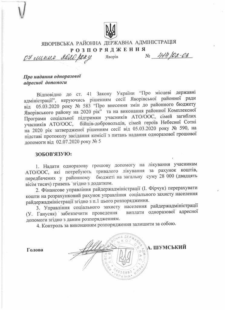 Про надання права підпису у Яворівській районній державній адміністрації |