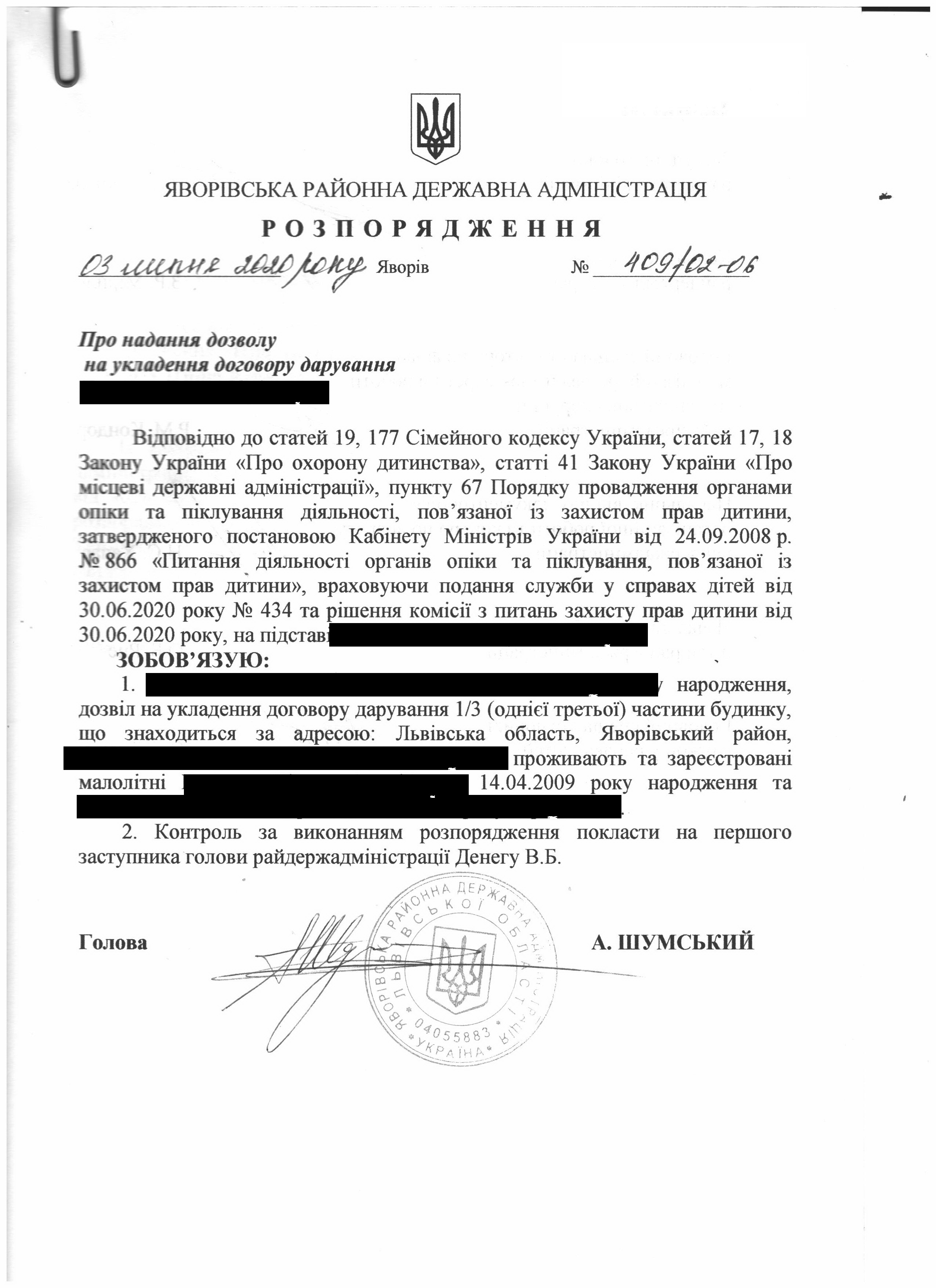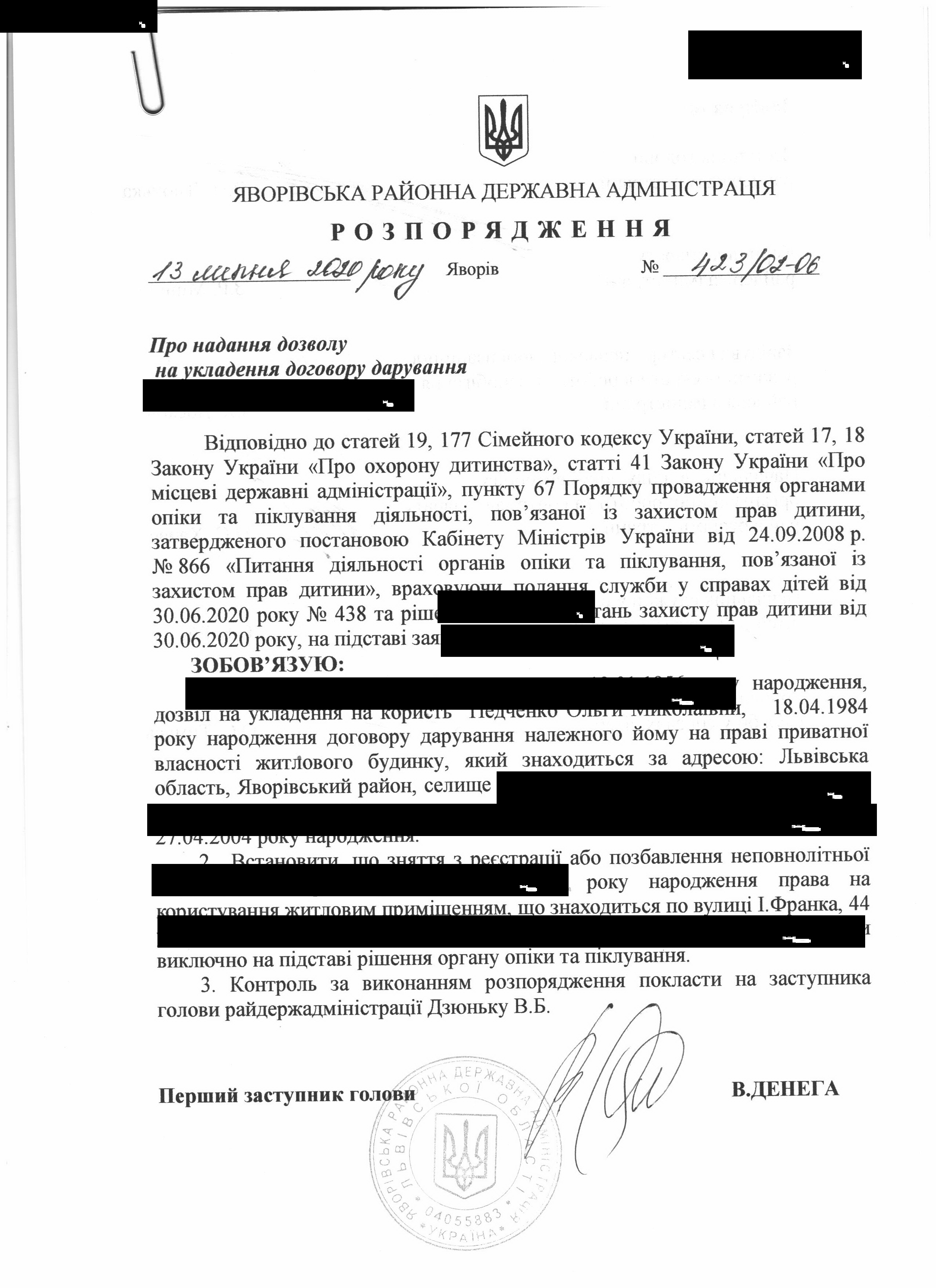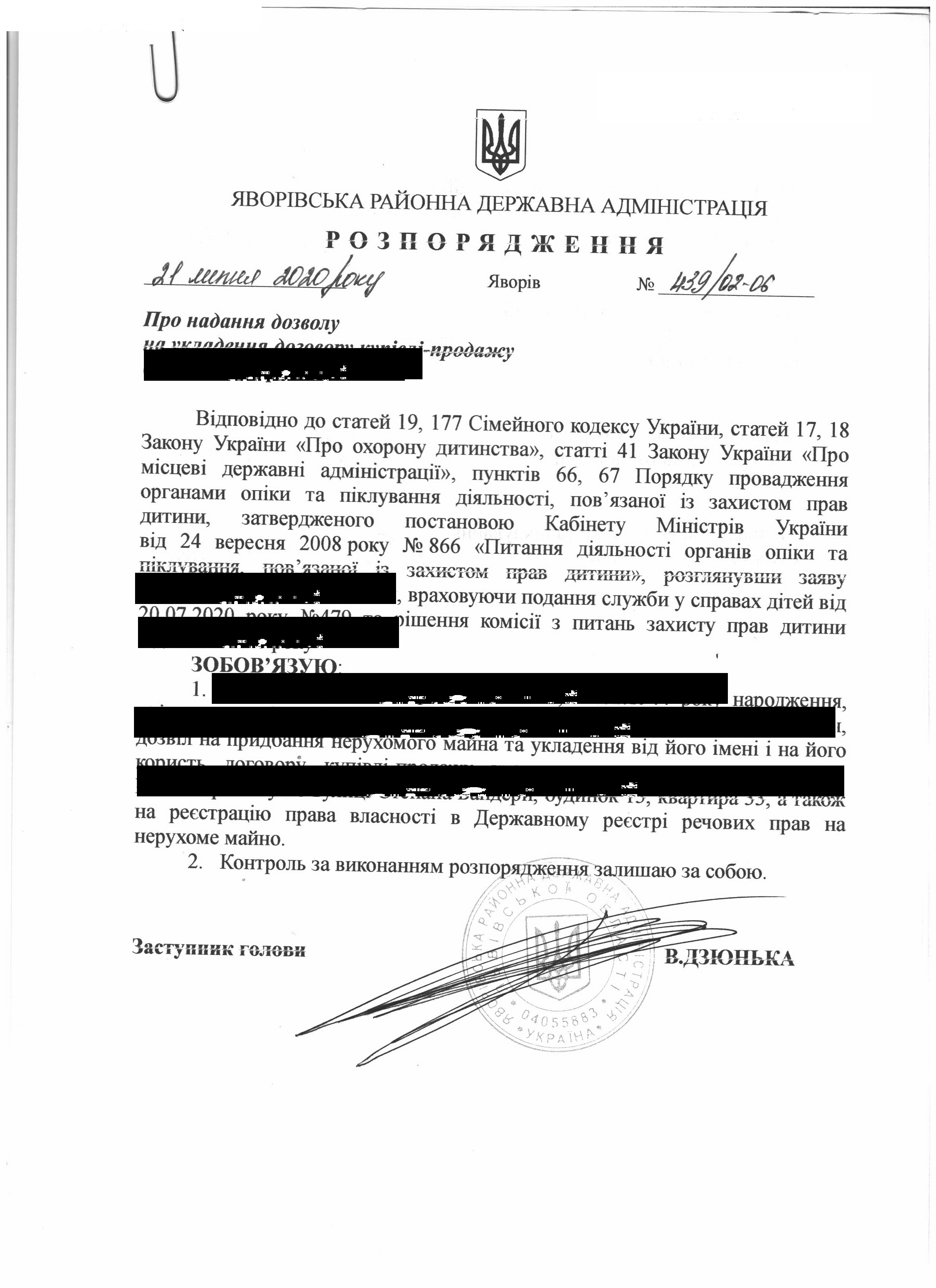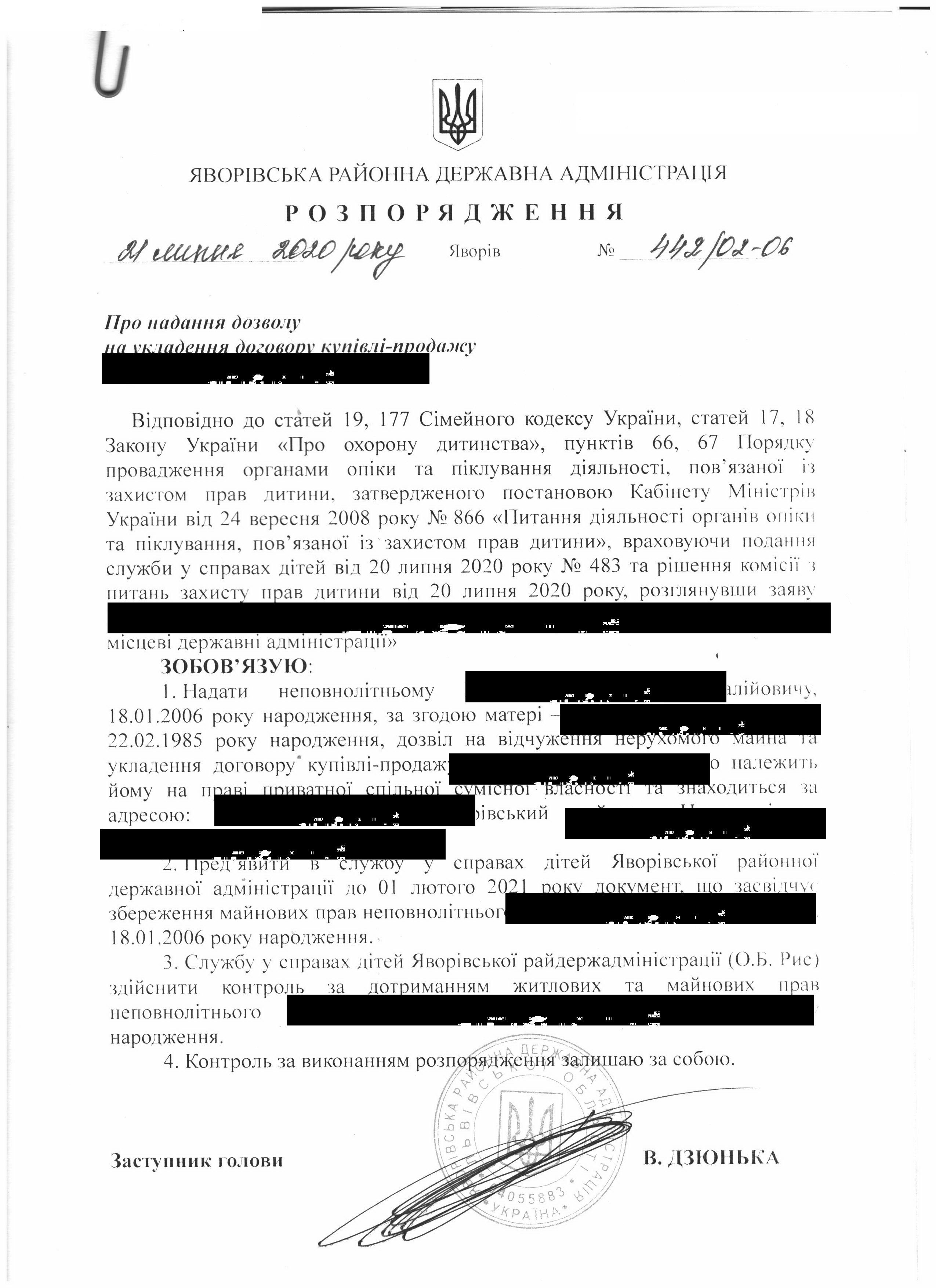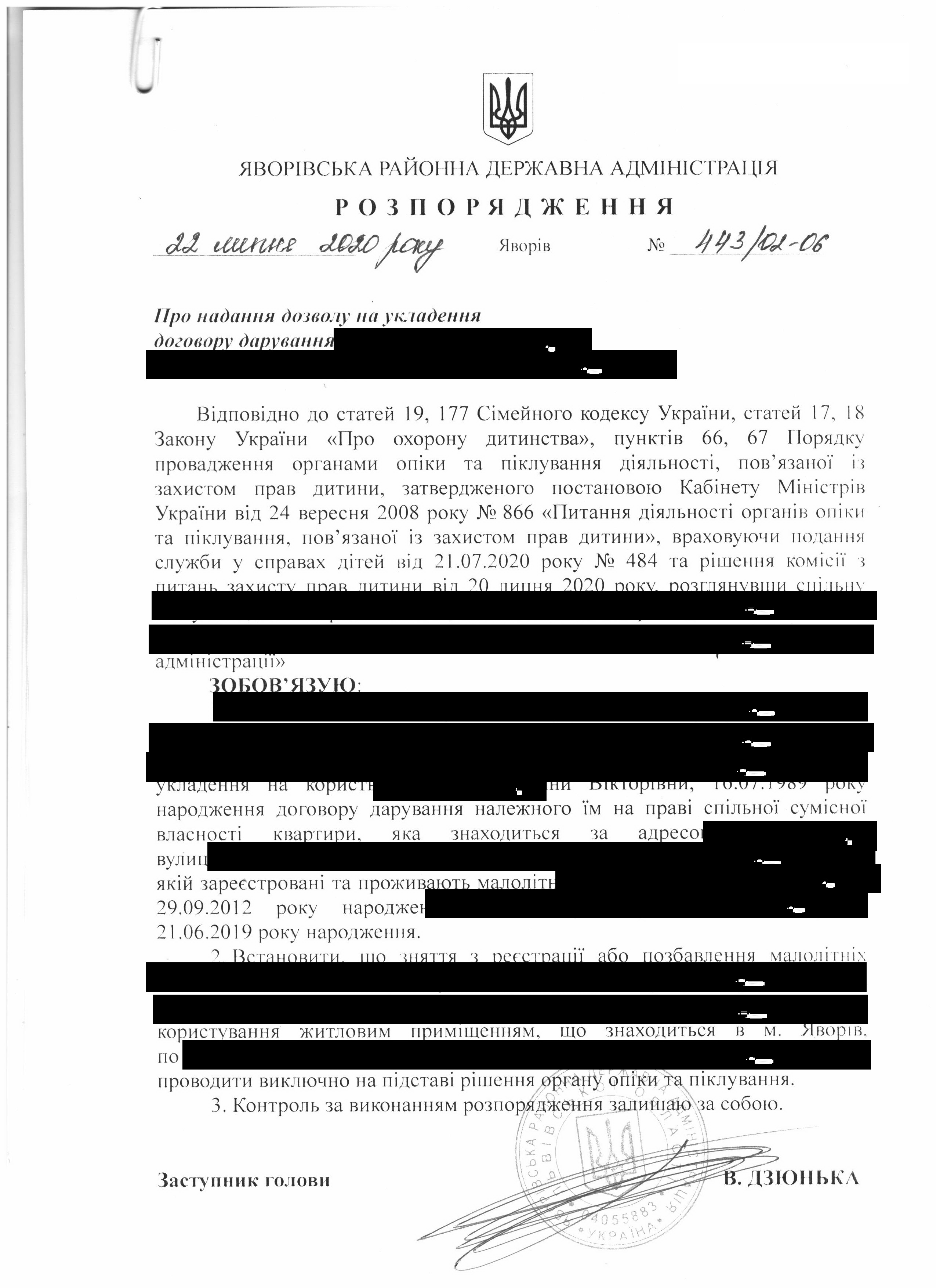 Про надання права підпису у Яворівській районній державній адміністрації |