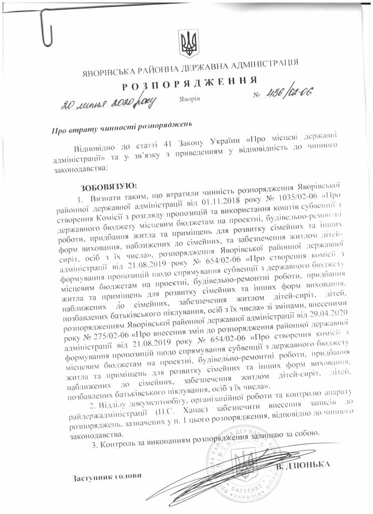 Про втрату чинності розпорядження |