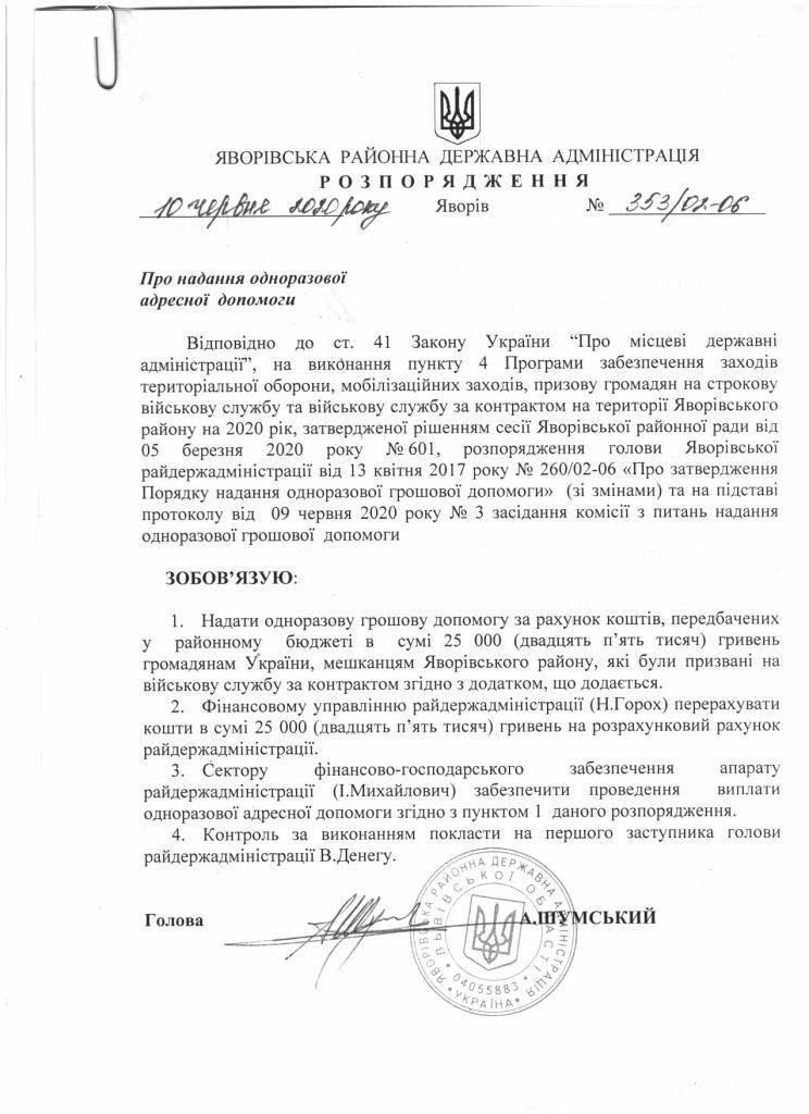 353/02-06 2020-06-10 Про надання одноразової адресної допомоги