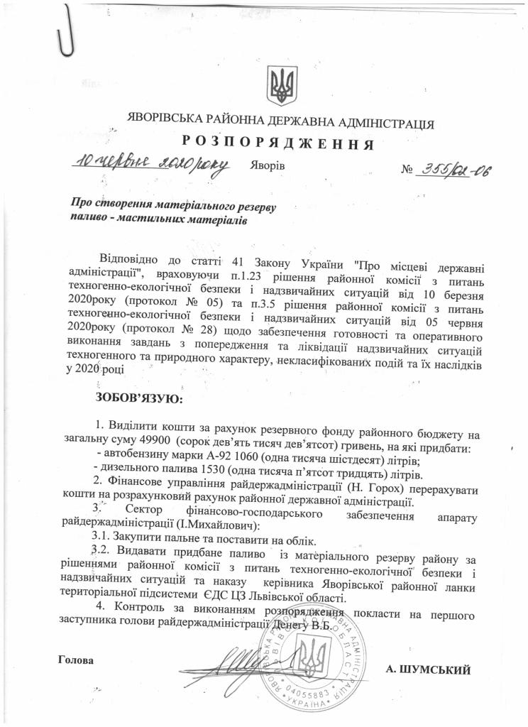 355/02-06 2020-06-10 Про створення матеріального резерву паливо-мастильних матеріалів