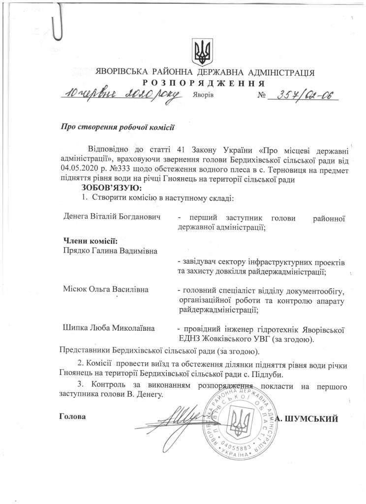 357/02-06 2020-06-10 Про створення робочої комісії