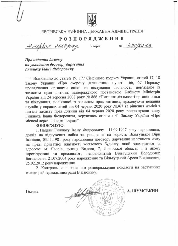 370/02-06 2020-06-11 Про надання дозволу на укладення договору дарування Гнилюху Івану Федоровичу