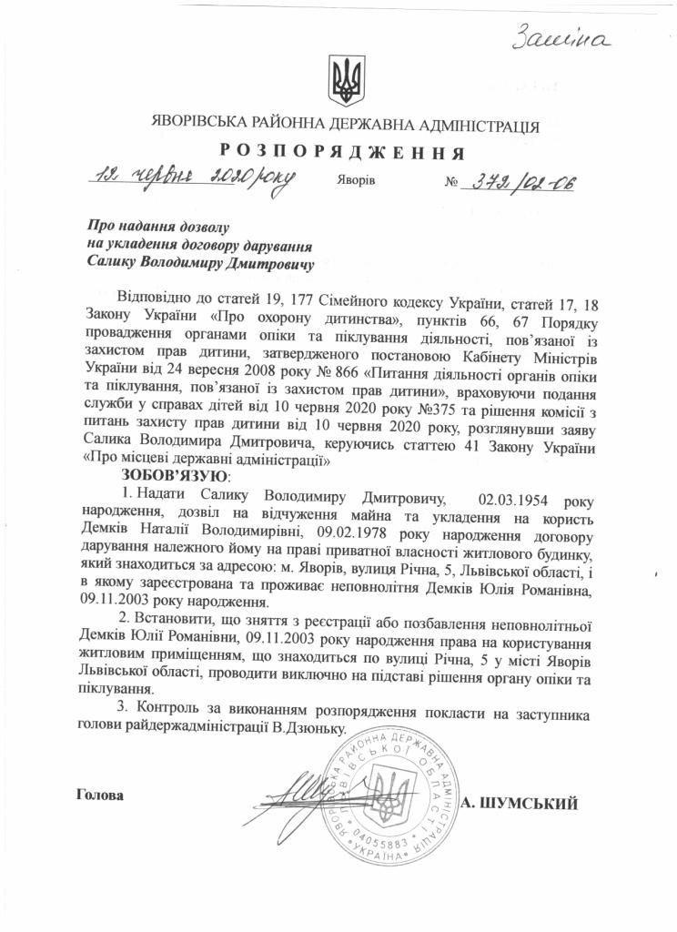 372/02-06 2020-06-12 Про надання дозволу на укладання договору дарування Салику Володимиру Дмитровичу