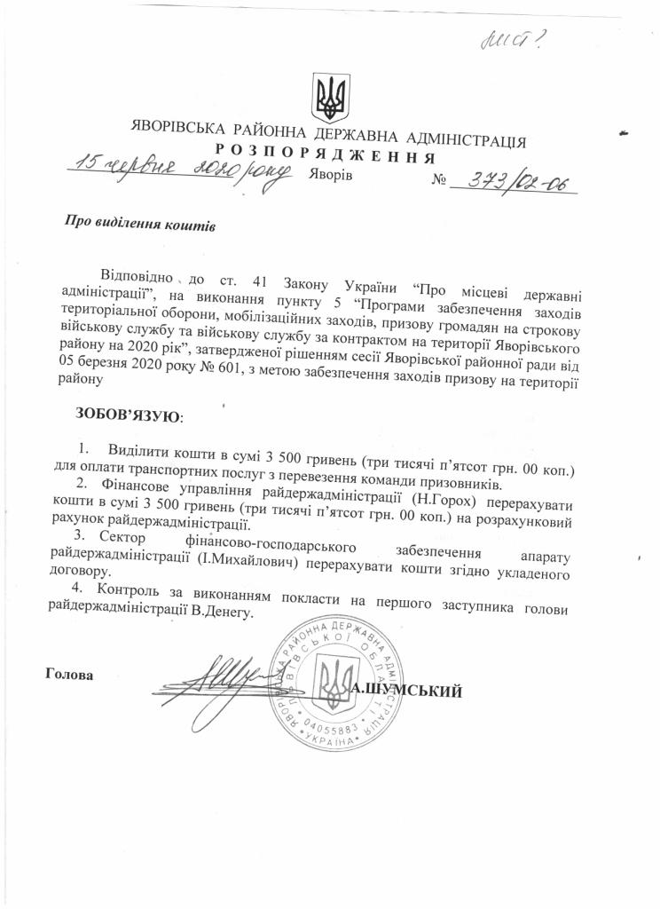 373/02-06 2020-06-15 Про виділення коштів
