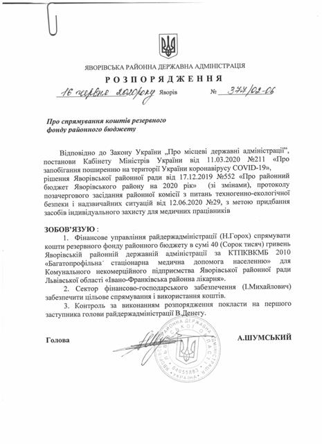 377/02-06 2020-06-16 Про спрямування коштів резервного фонду районного бюджету