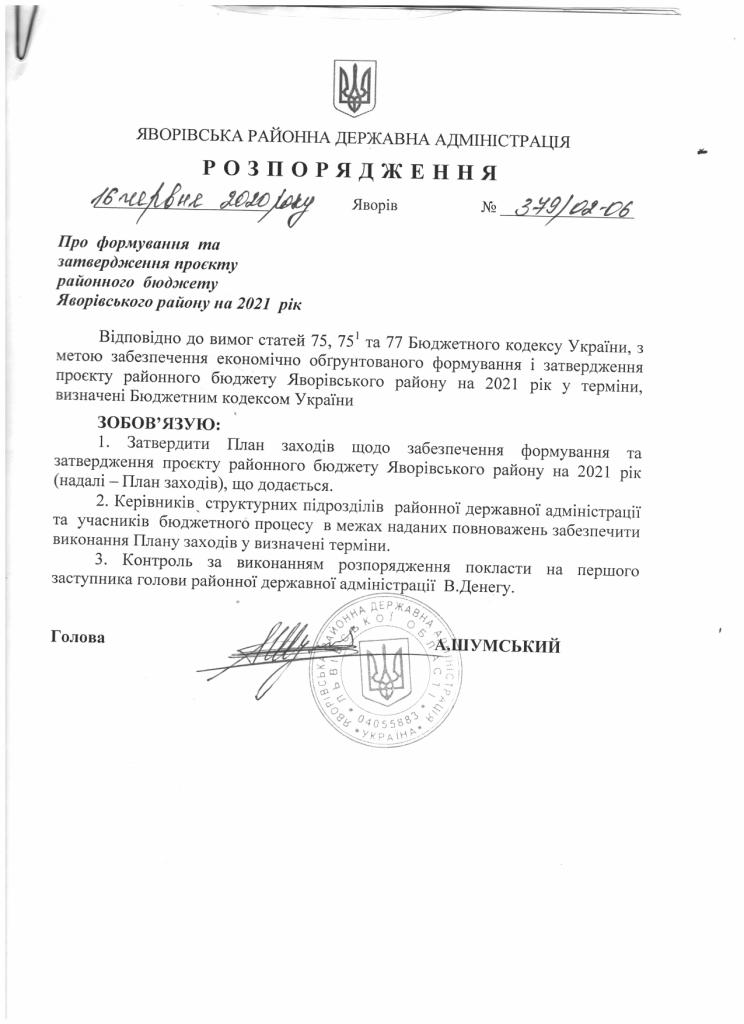 379/02-06 2020-06-16 Про формування та затвердження проекту районного бюджету Яворівського району на 2021 рік