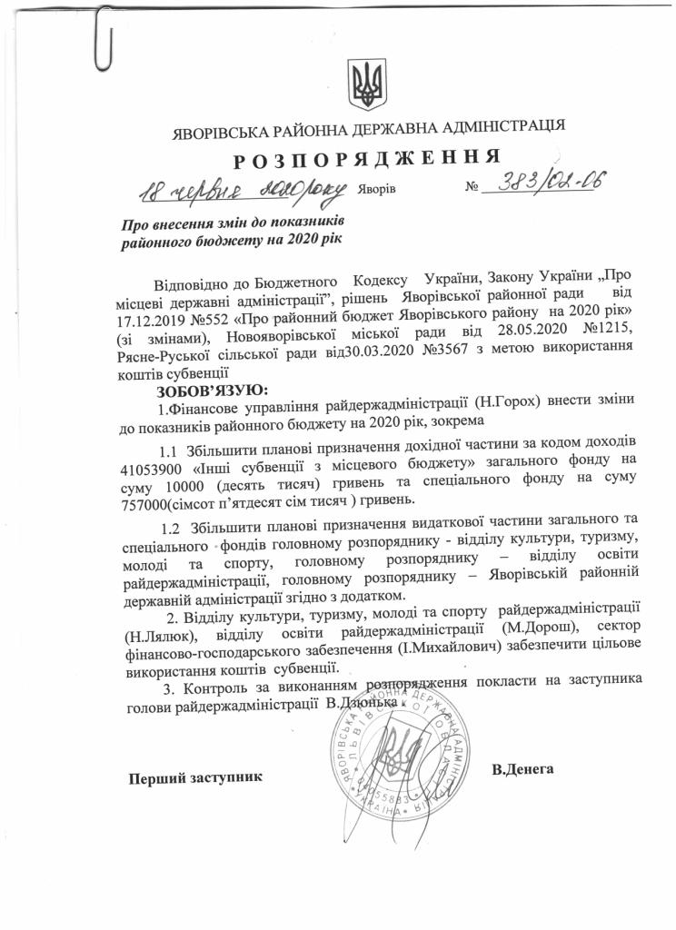 383/02-06 2020-06-18 Про внесення змін до показників районного бюджету на 2020 рік