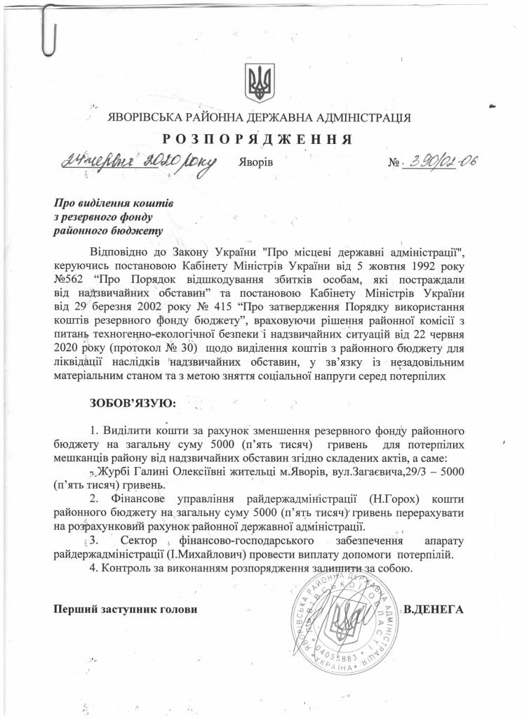390/02-06 2020-06-24 Про виділення коштів з резервного фонду районного бюджету